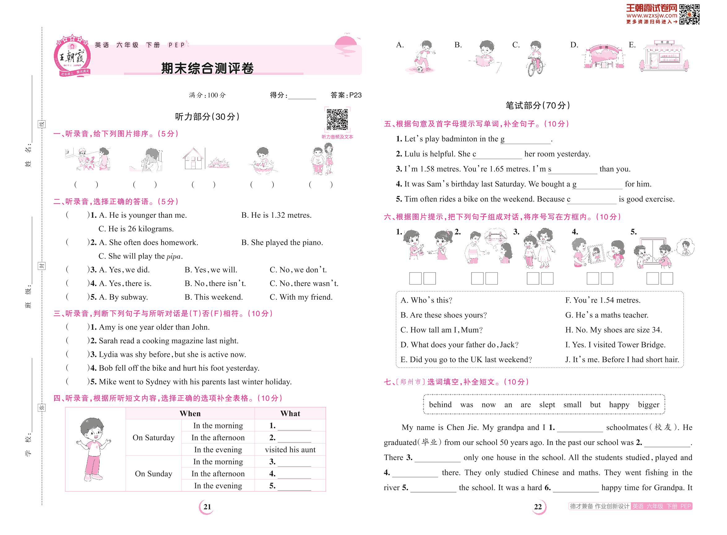 2023下册六年级英语人教PEP版 期末综合测评卷