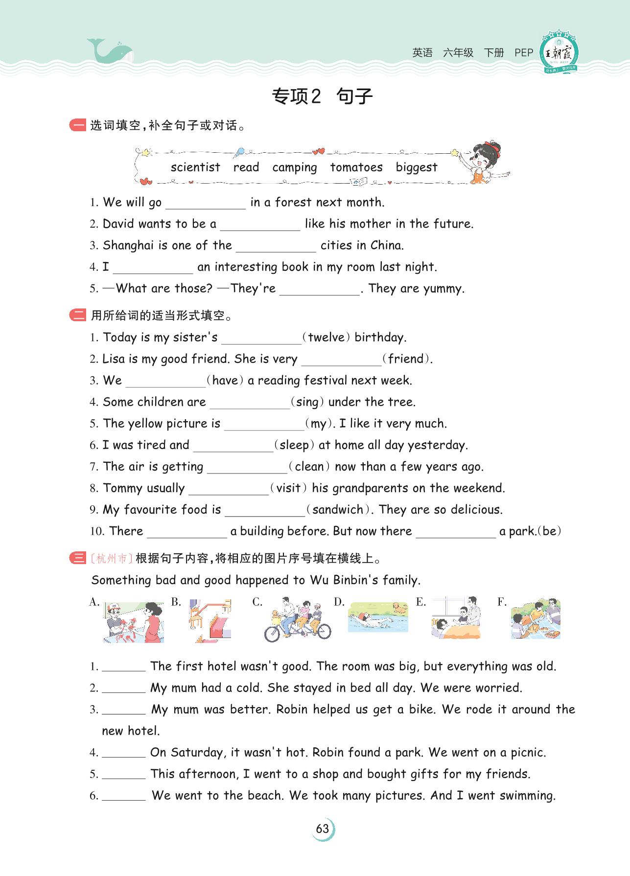 六年级英语人教PEP版(三起始)下册专项卷