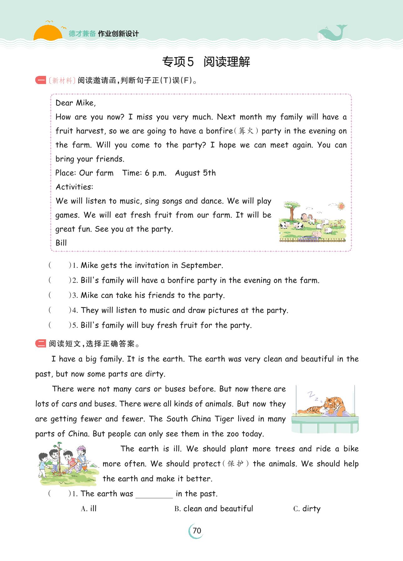 2023下册六年级英语人教PEP版 专项5 阅读理解