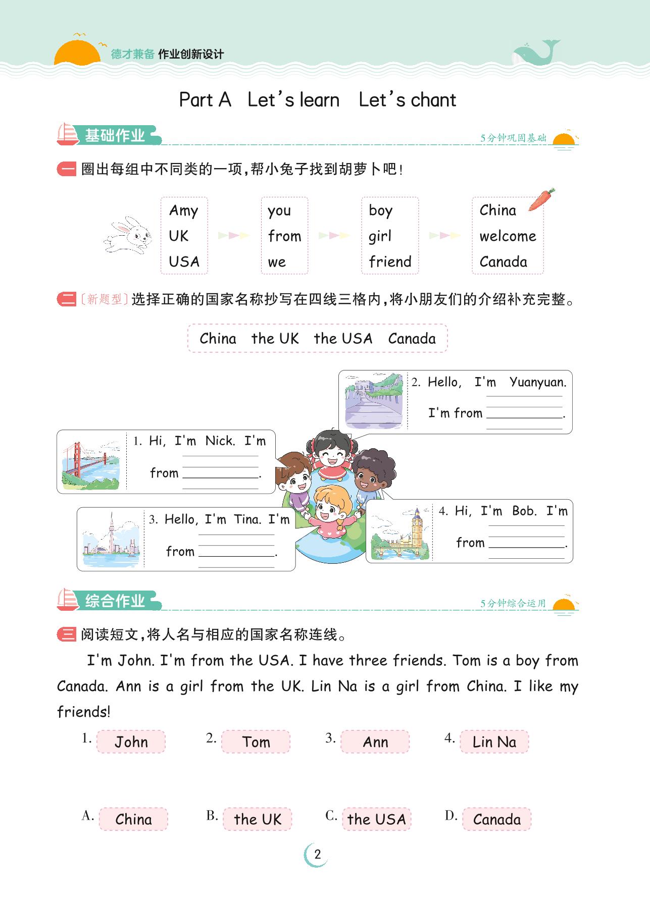 2023下册三年级英语人教PEP版 Unit 1 Part A—Let’s learn Let’s chant