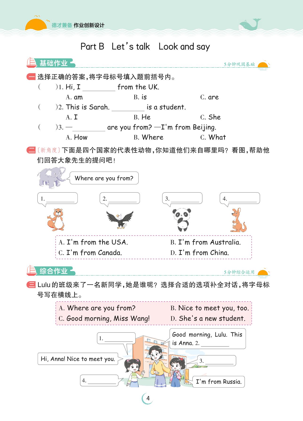 2023下册三年级英语人教PEP版 Unit 1 Part B—Let’s talk Look and say