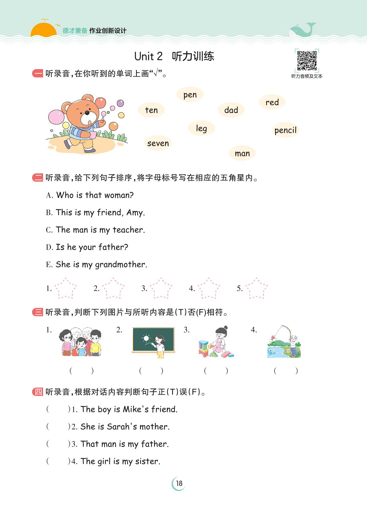 2023下册三年级英语人教PEP版 Unit 2 听力训练