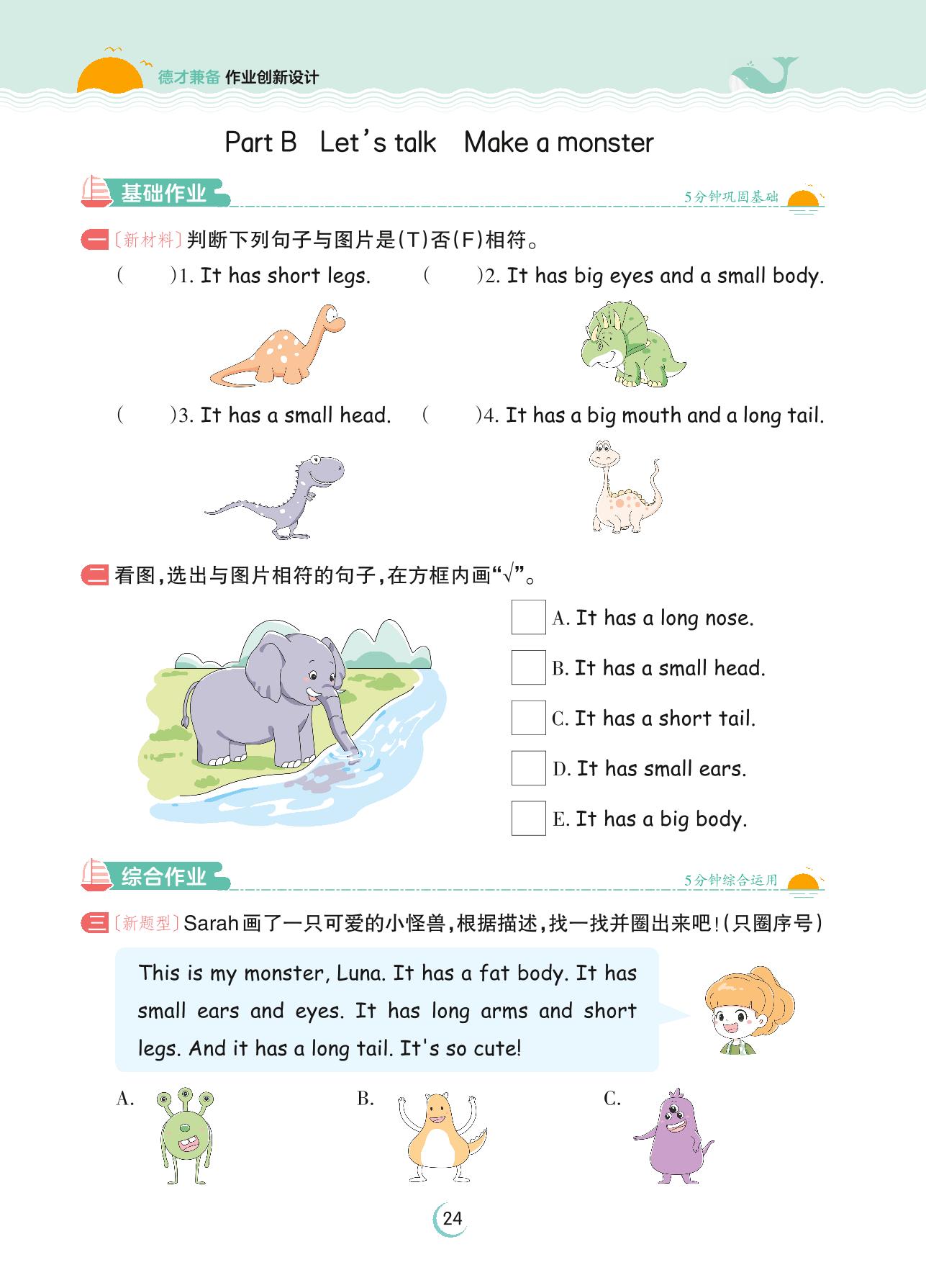2023下册三年级英语人教PEP版 Unit 3 Part B—Let’s talk Make a monster