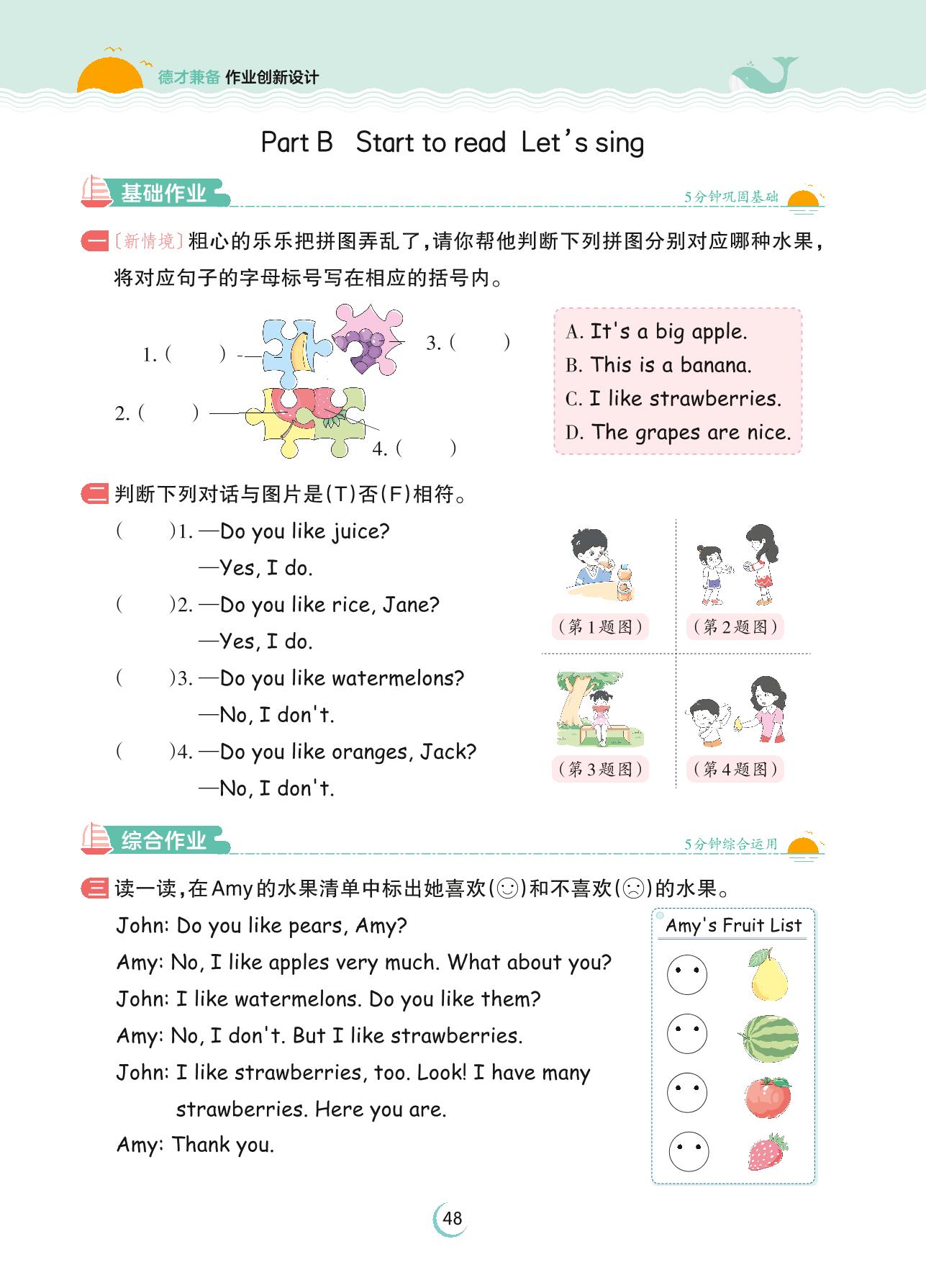 2023下册三年级英语人教PEP版 Unit 5 Part B—Start to read Let’s sing