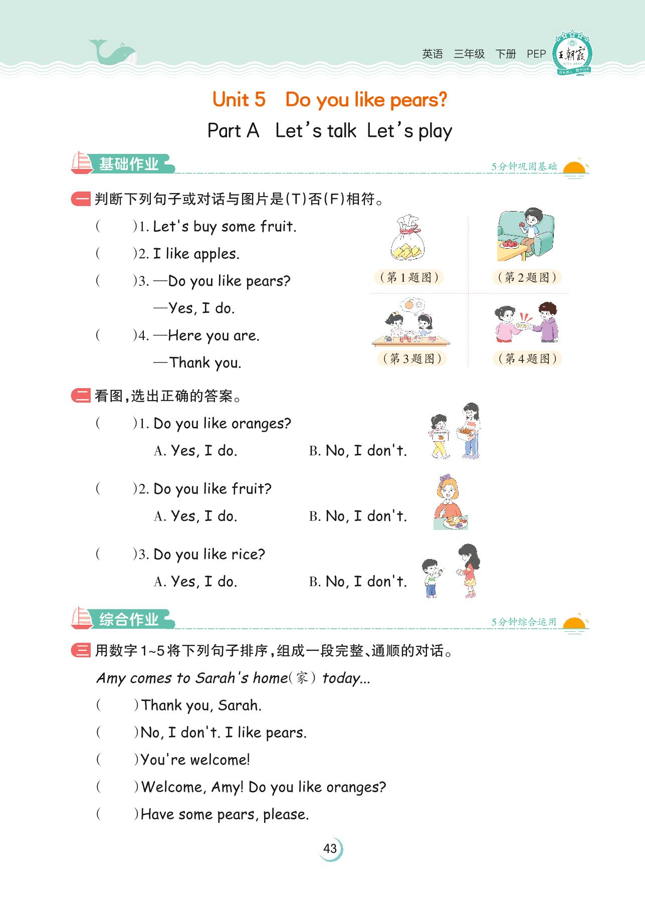2023下册三年级英语人教PEP版 Unit 5 Part A—Let’s talk Let’s play