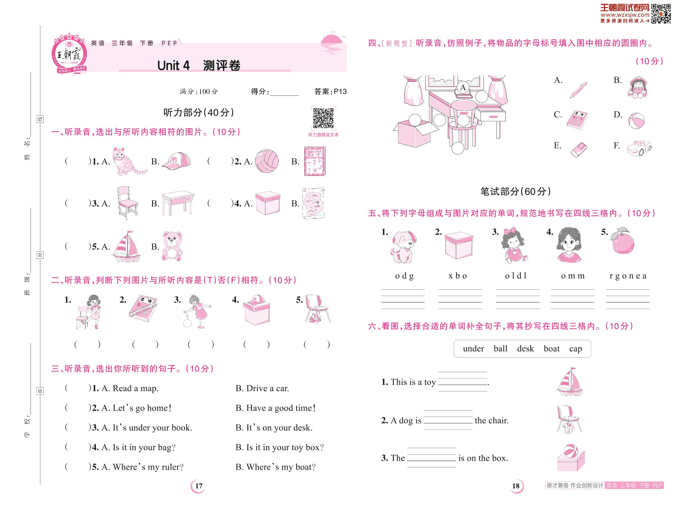 三年级英语人教PEP版(三起始)下册单元卷