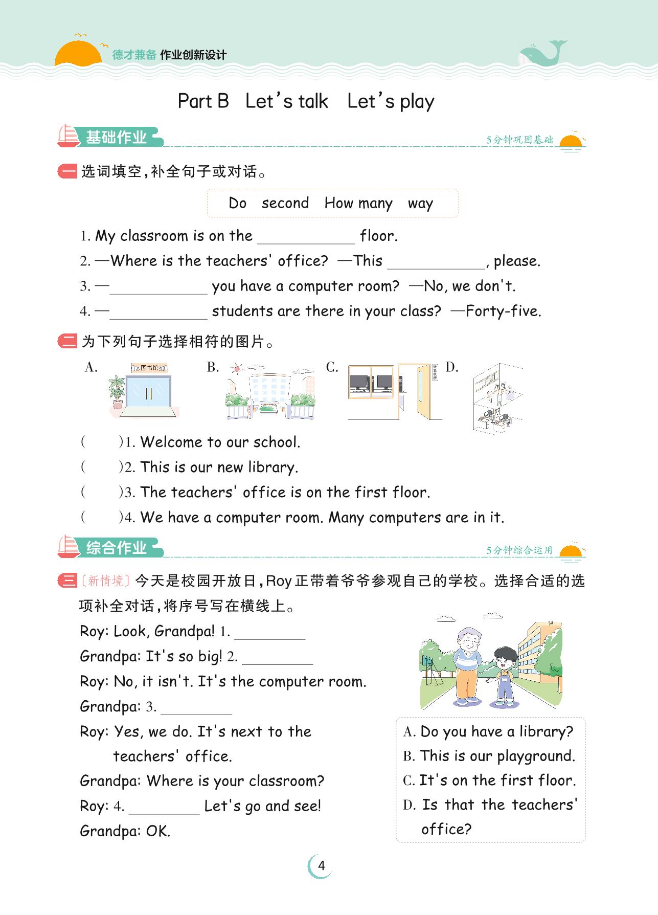 2023下册四年级英语人教PEP版 Unit 1 Part B—Let’s talk Let’s play