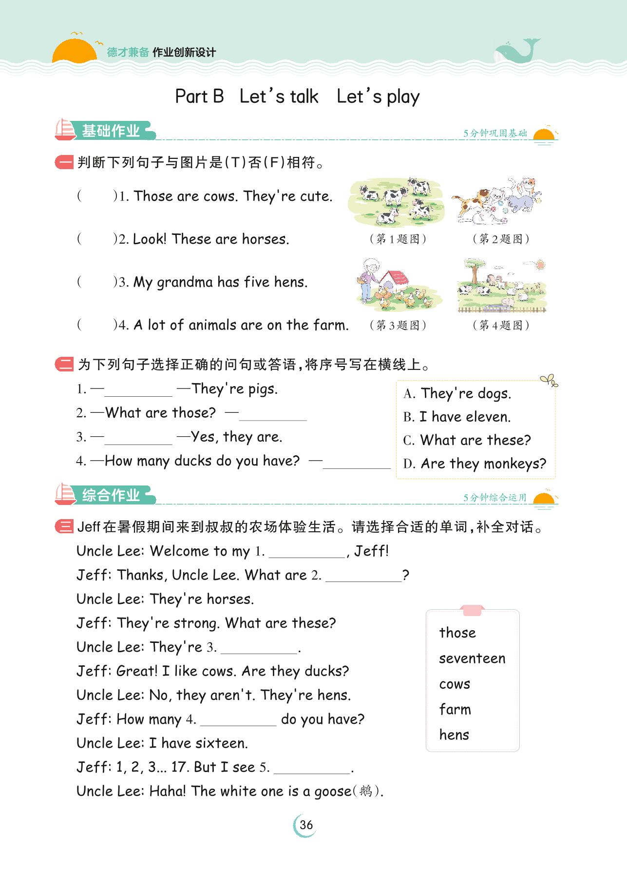2023下册四年级英语人教PEP版 Unit 4 Part B—Let’s talk Let’s play