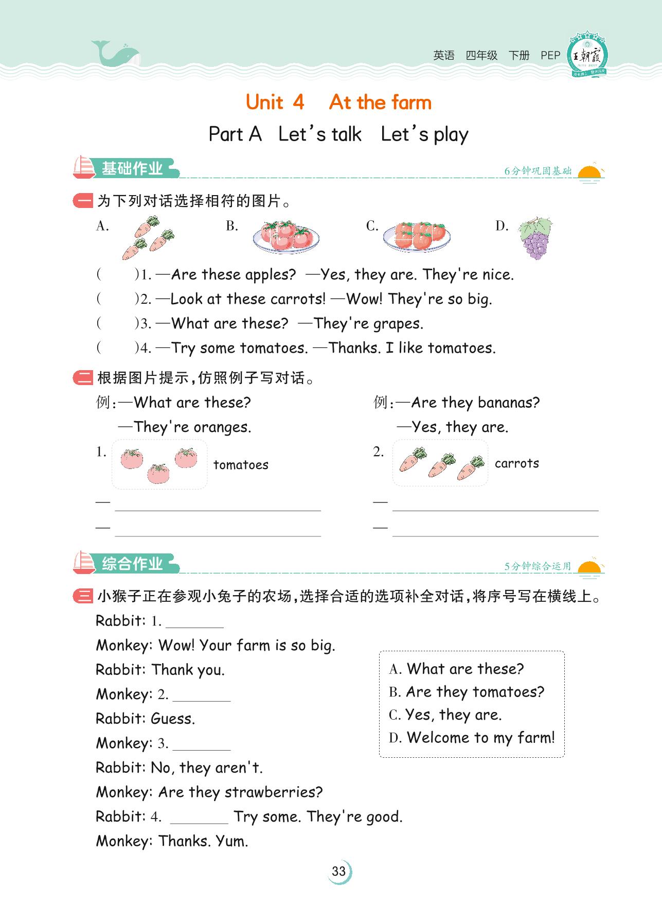 2023下册四年级英语人教PEP版 Unit 4 Part A—Let’s talk Let’s play