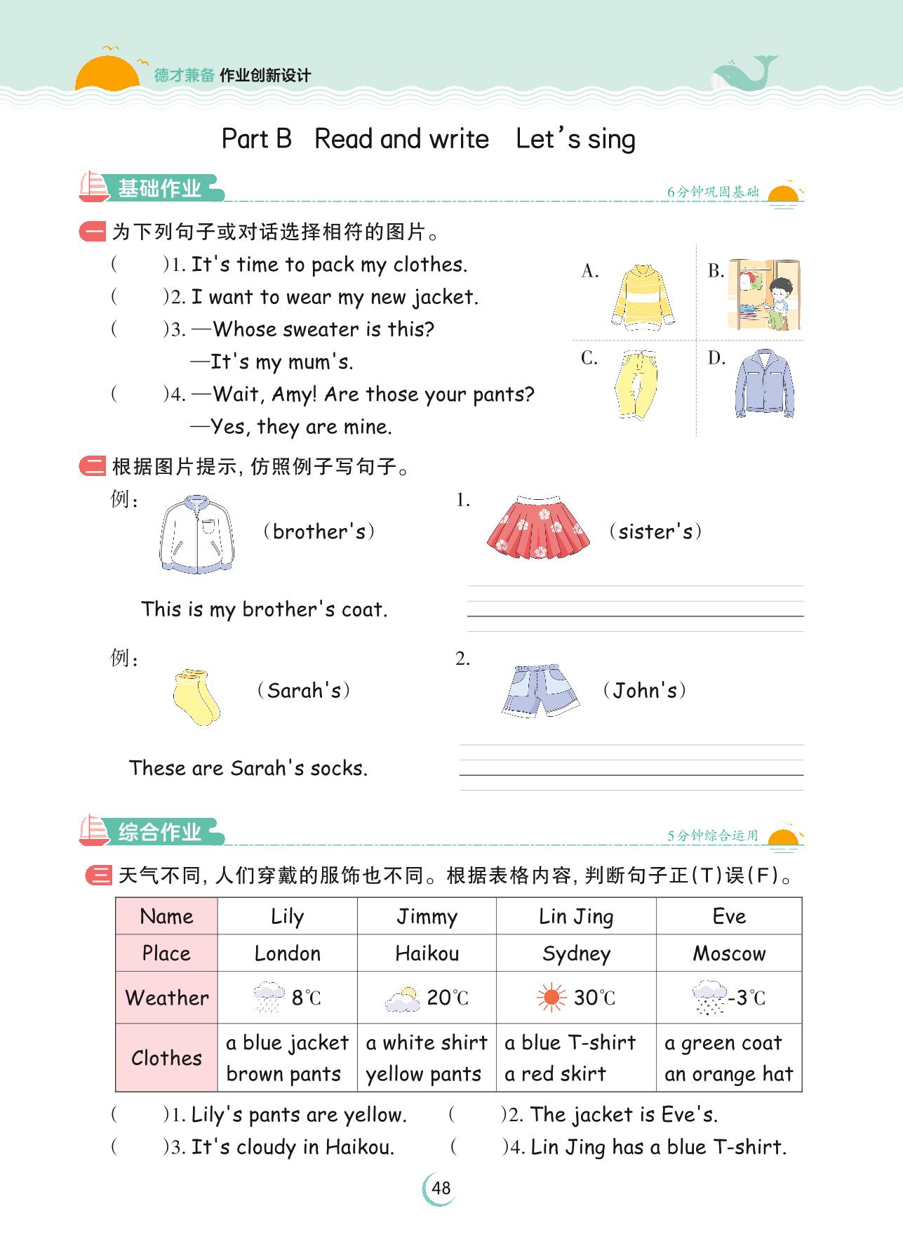 2023下册四年级英语人教PEP版 Unit 5 Part B—Read and write Let’s sing