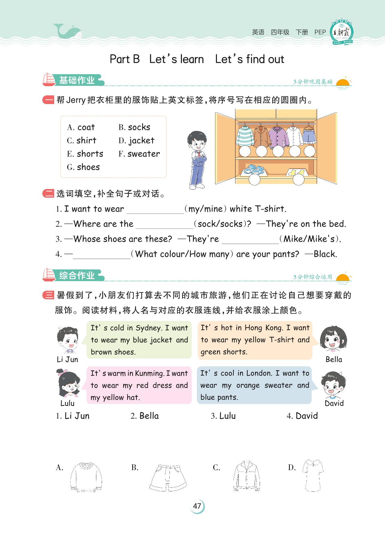 2023下册四年级英语人教PEP版 Unit 5 Part B—Let’s learn Let’s find out