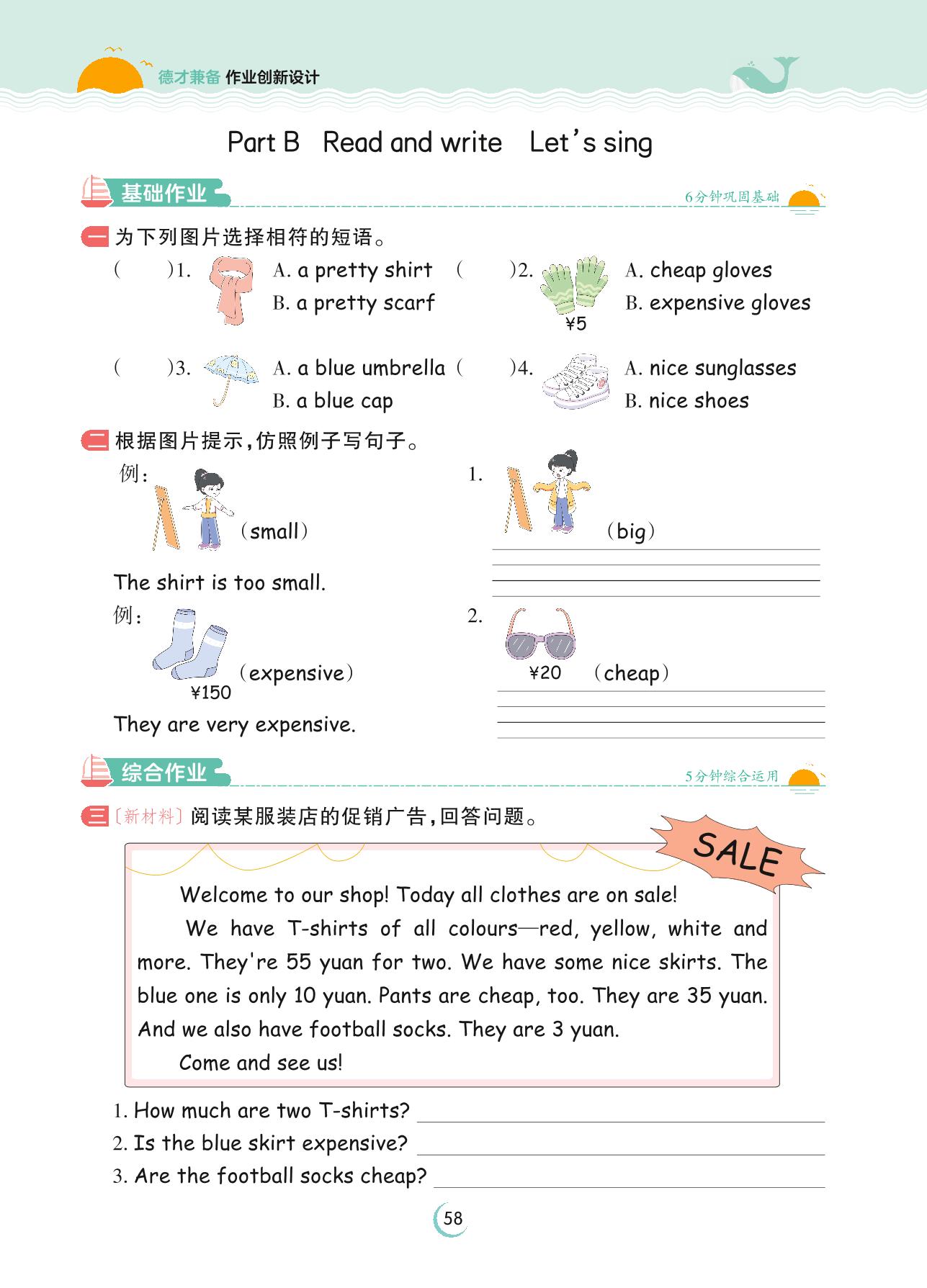 2023下册四年级英语人教PEP版 Unit 6 Part B—Read and write Let’s sing