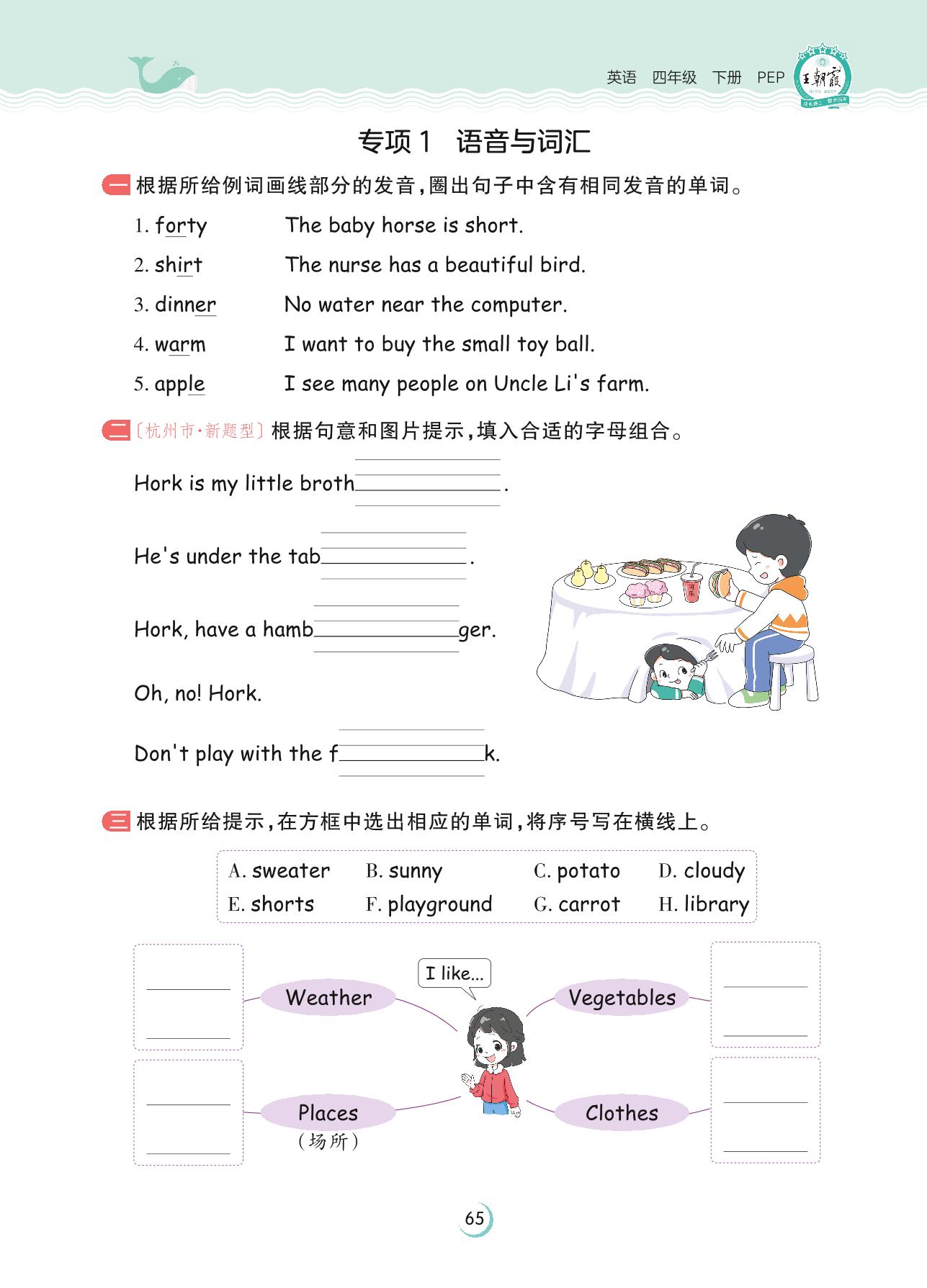 2023下册四年级英语人教PEP版 专项1 语音与词汇