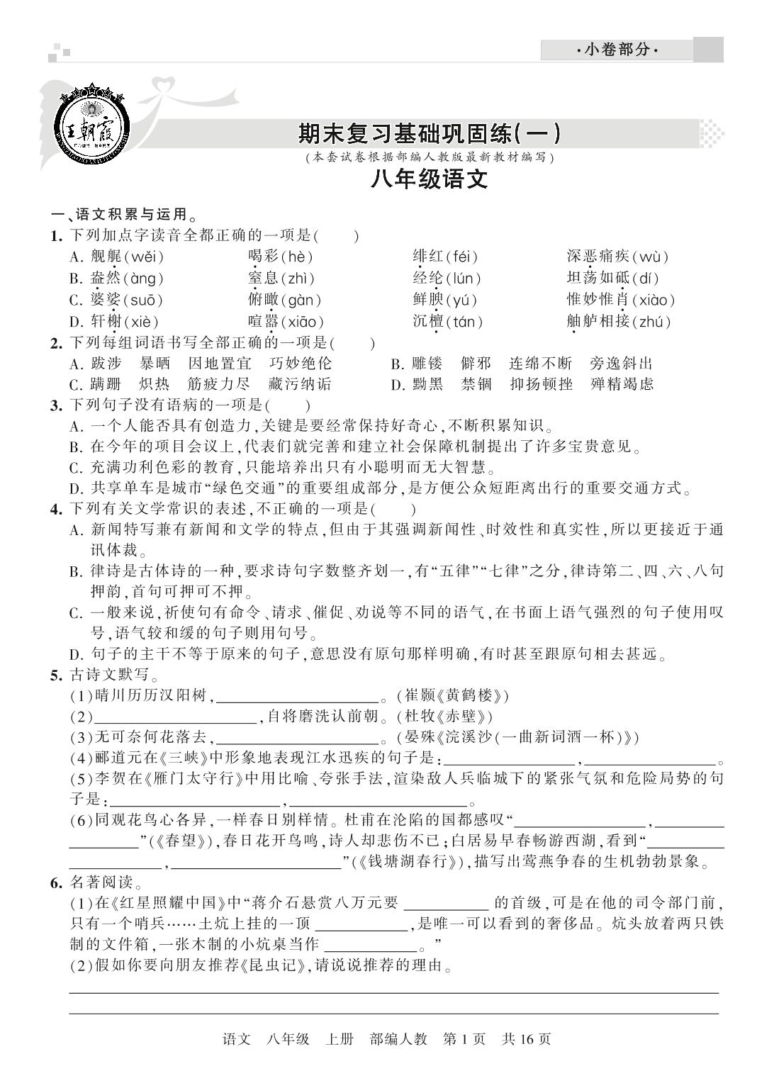 王朝霞期末小卷——期末复习基础巩固练八年级上册语文(人教版)_R210802182802【0】