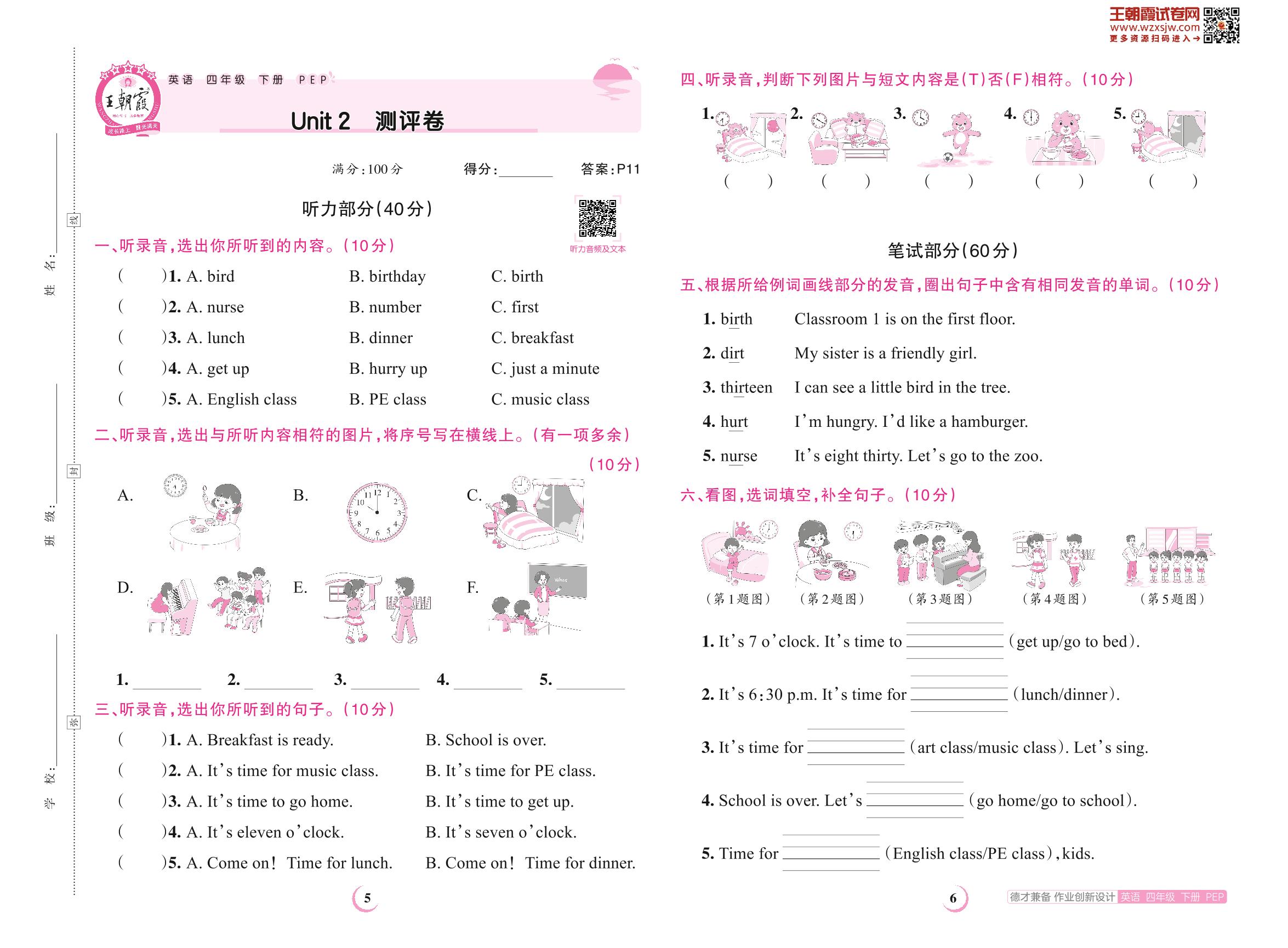 2023下册四年级英语人教PEP版 Unit 2 测评卷