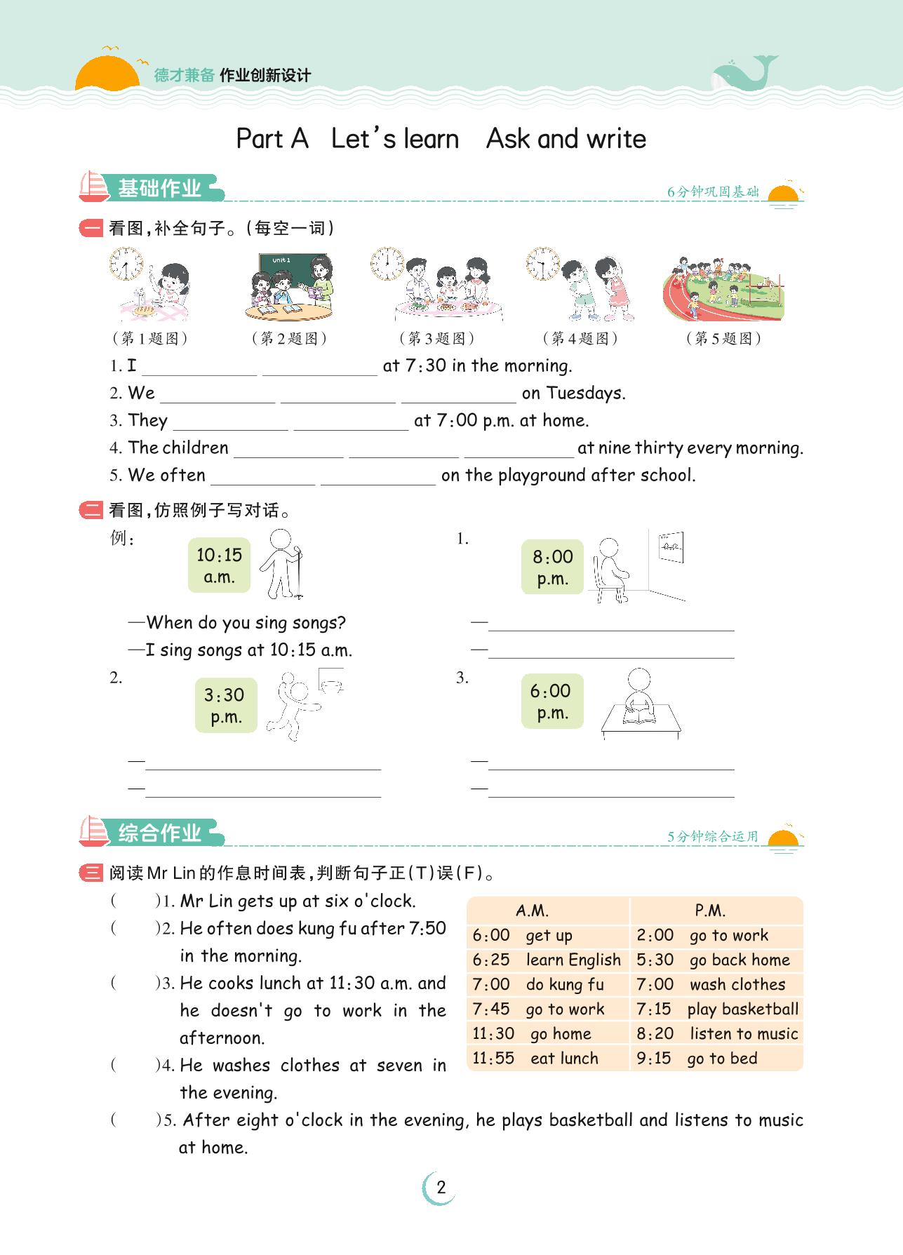 五年级英语人教PEP版(三起始)下册课时作业