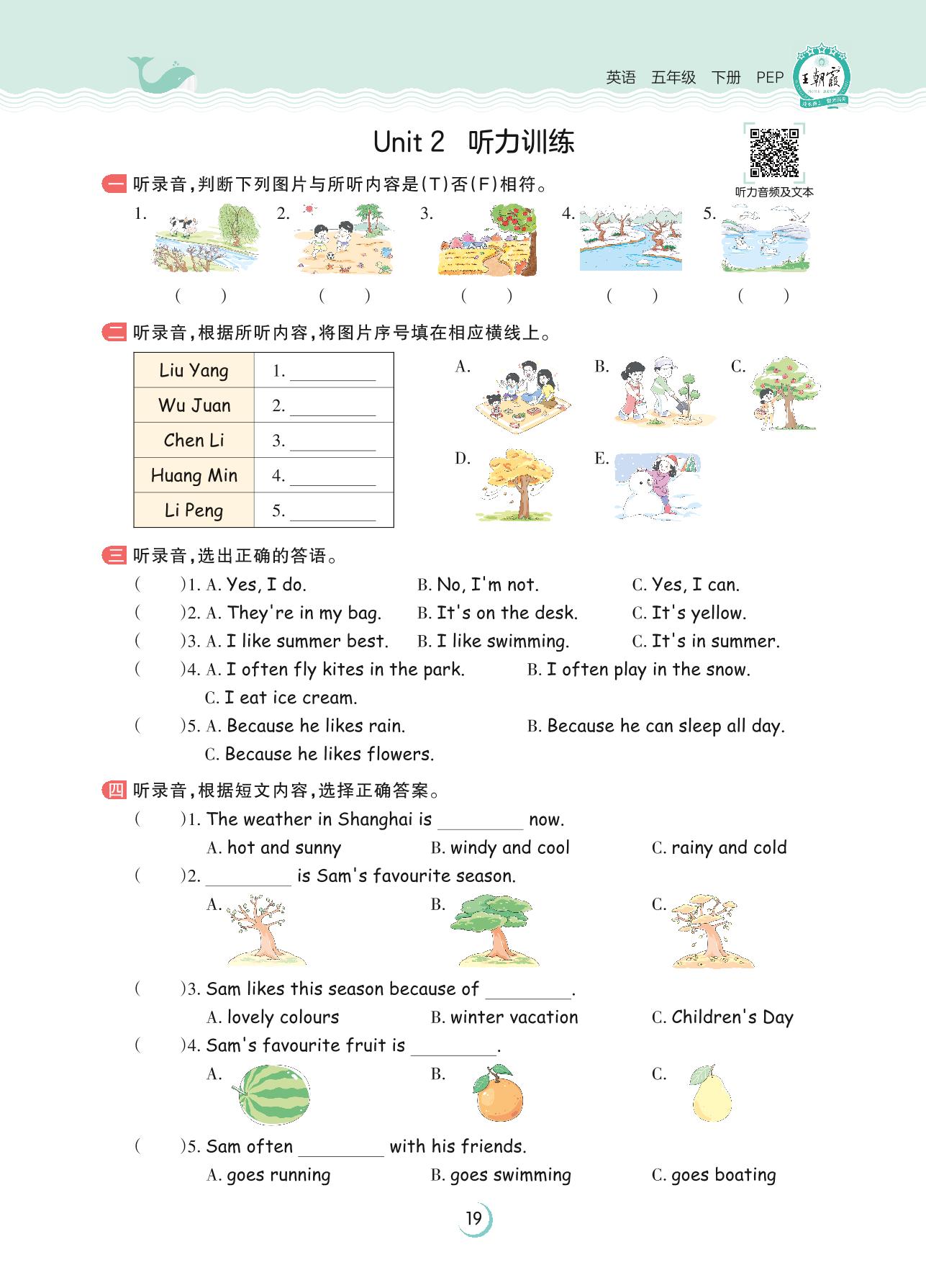 2023下册五年级英语人教PEP版 Unit 2 听力训练