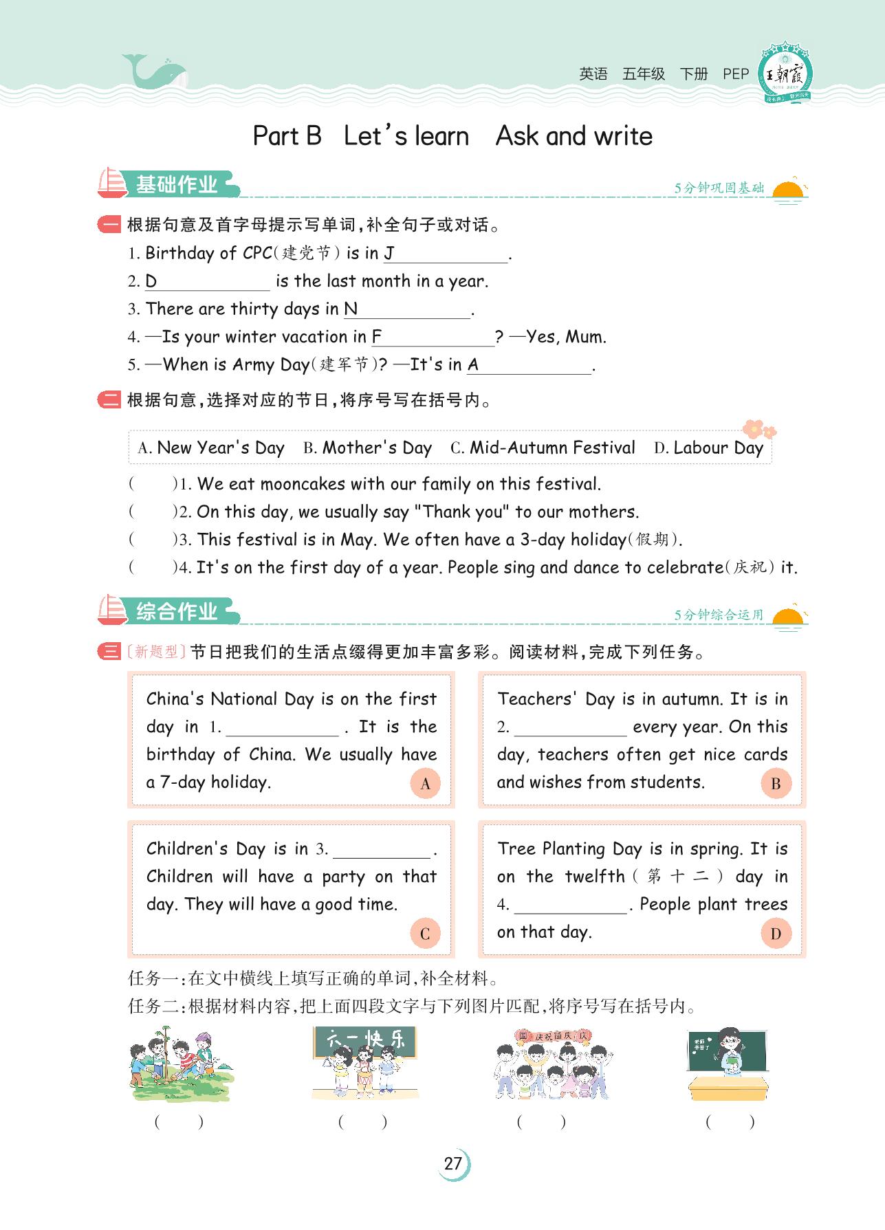 2023下册五年级英语人教PEP版 Unit 3 Part B—Let’s learn Ask and write