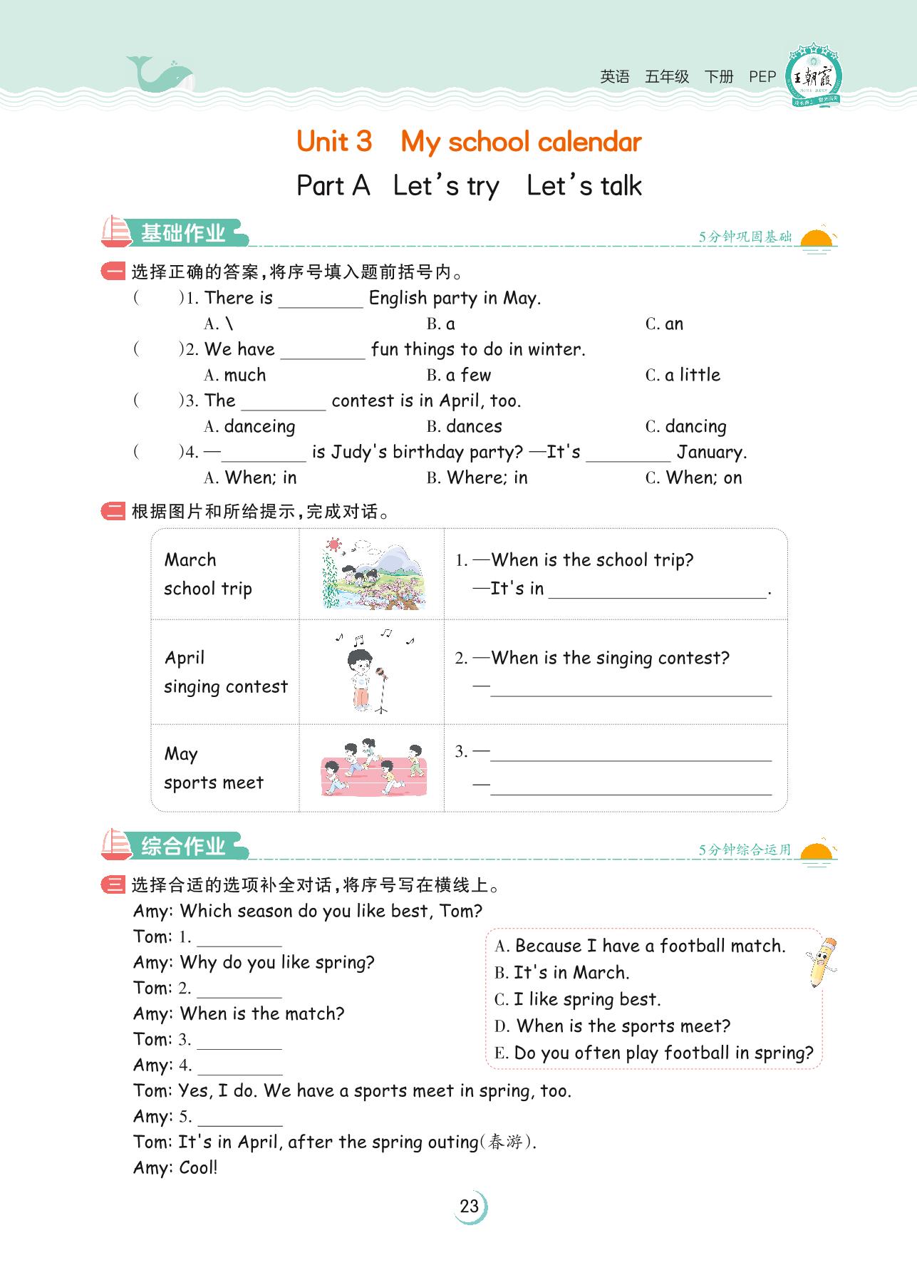 2023下册五年级英语人教PEP版 Unit 3 Part A—Let’s try Let’s talk