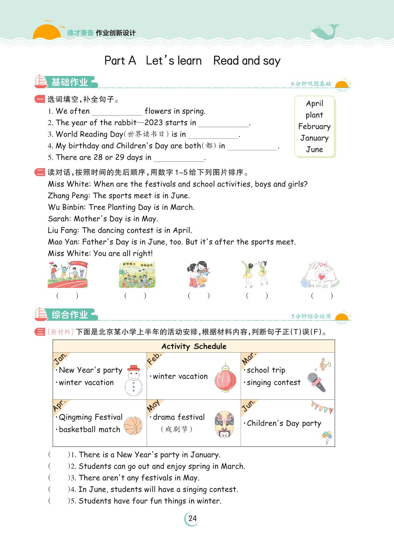2023下册五年级英语人教PEP版 Unit 3 Part A—Let’s learn Read and say