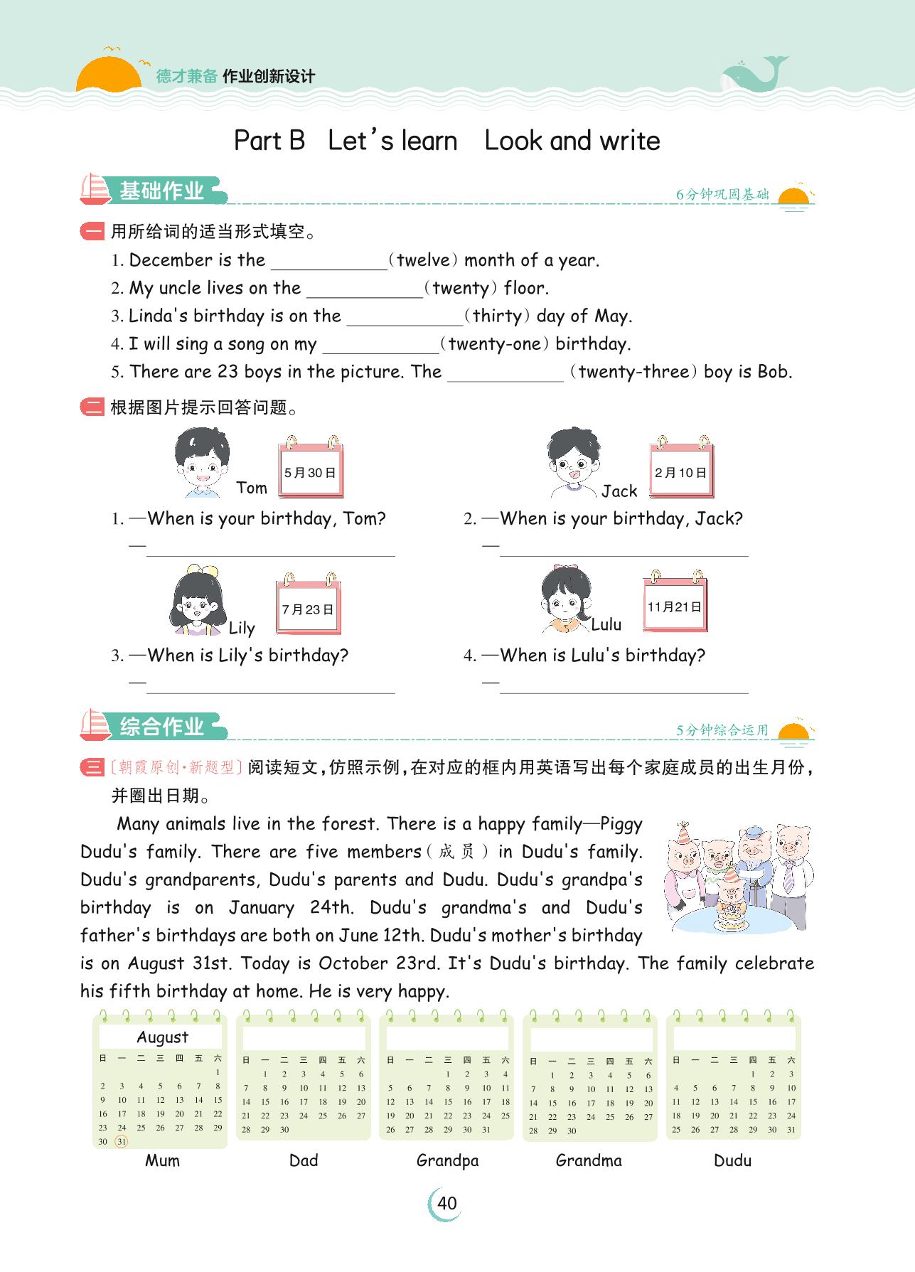 2023下册五年级英语人教PEP版 Unit 4 Part B—Let’s learn Look and write