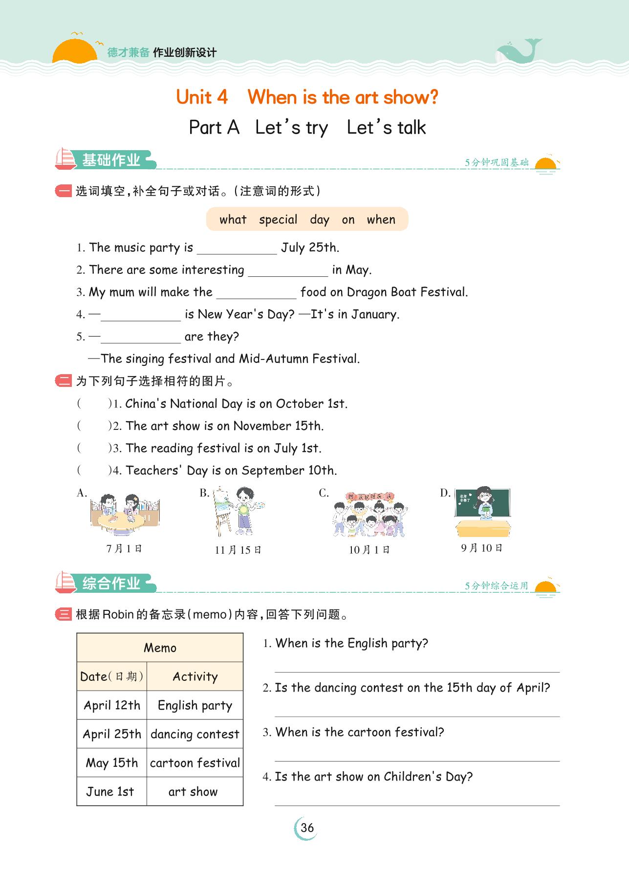 2023下册五年级英语人教PEP版 Unit 4 Part A—Let’s try Let’s talk