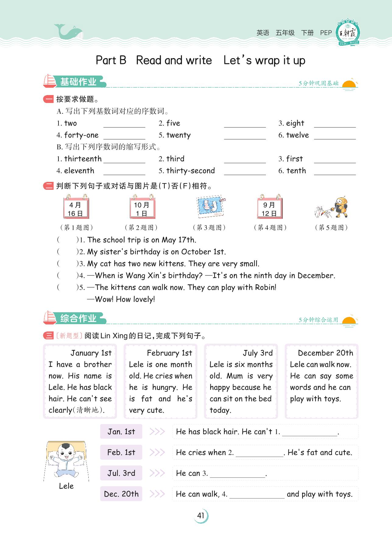 2023下册五年级英语人教PEP版 Unit 4 Part B—Read and write Let’s wrap it up