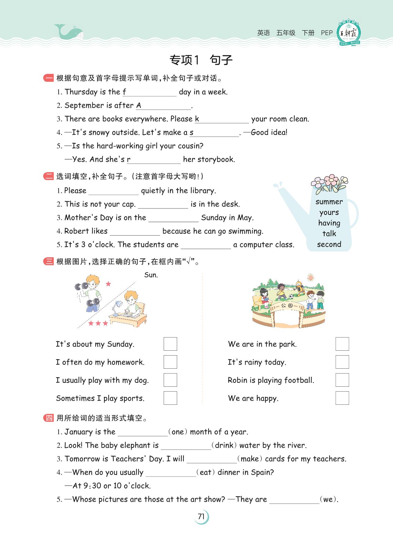 2023下册五年级英语人教PEP版 专项1 句子
