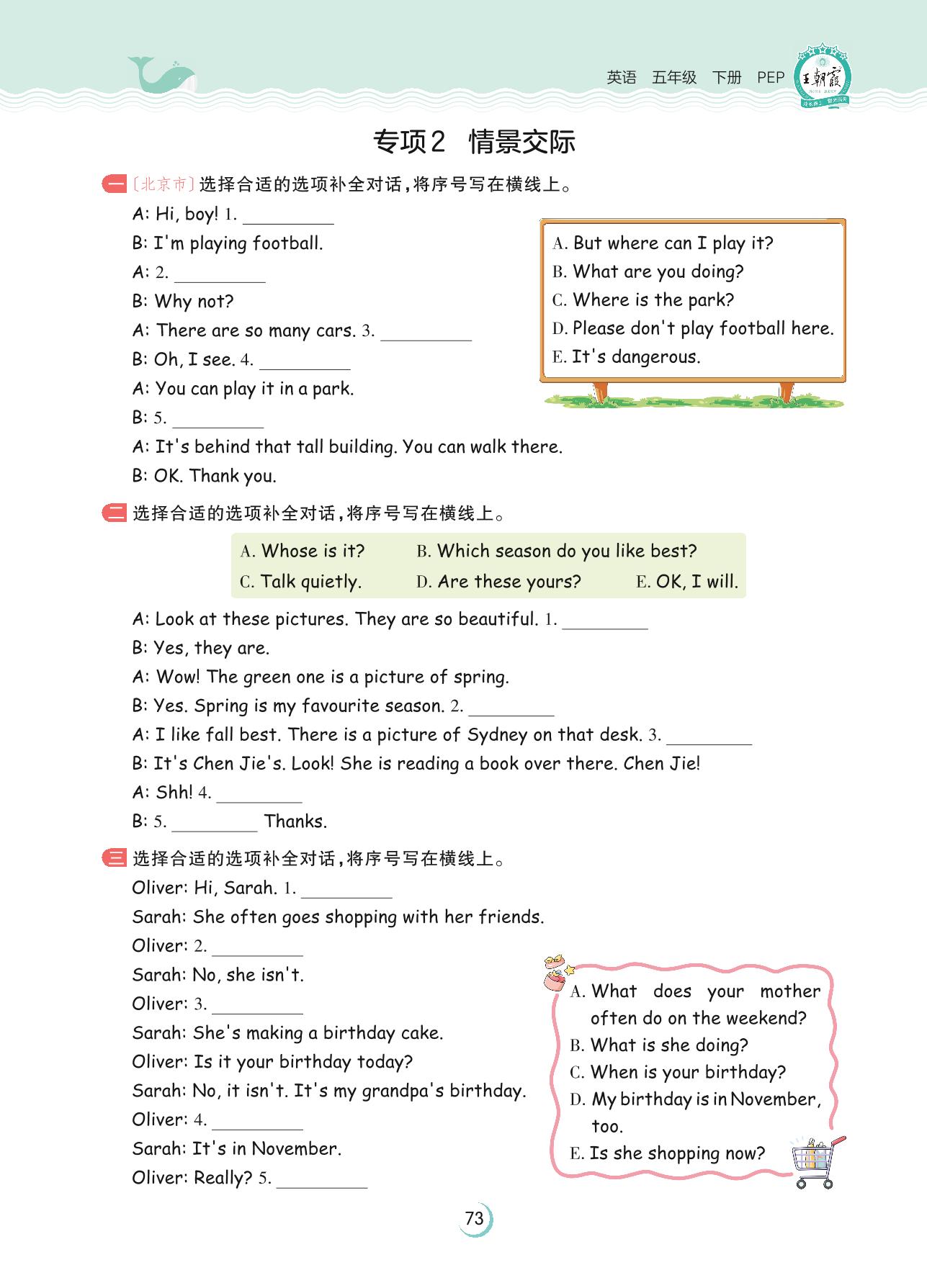 2023下册五年级英语人教PEP版 专项2 情景交际