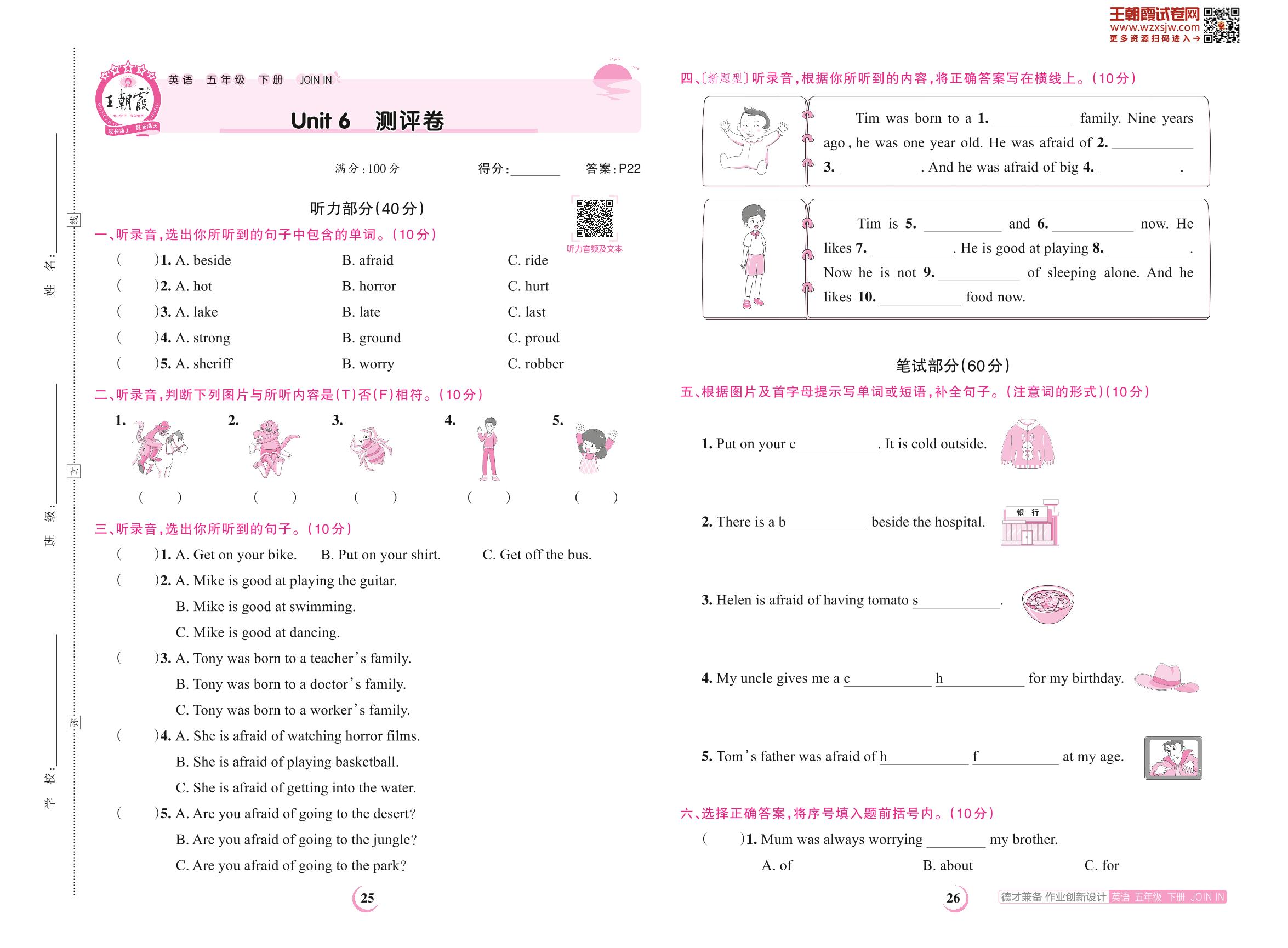 五年级英语剑桥版下册单元卷