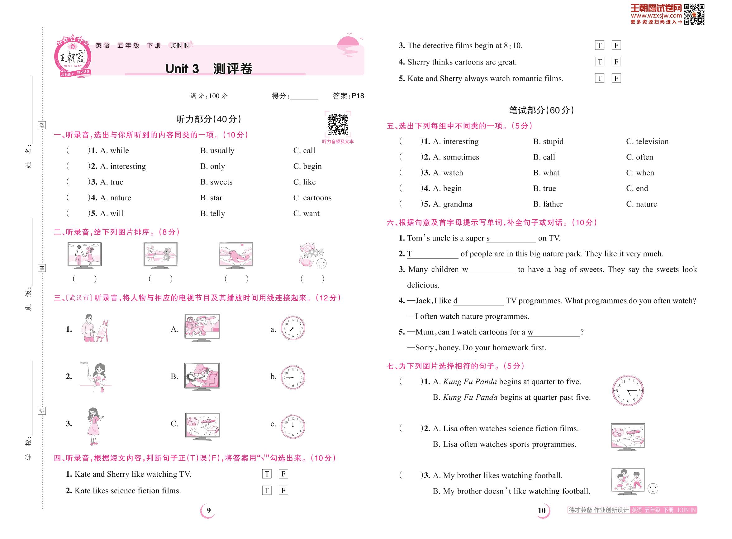 五年级英语剑桥版下册单元卷