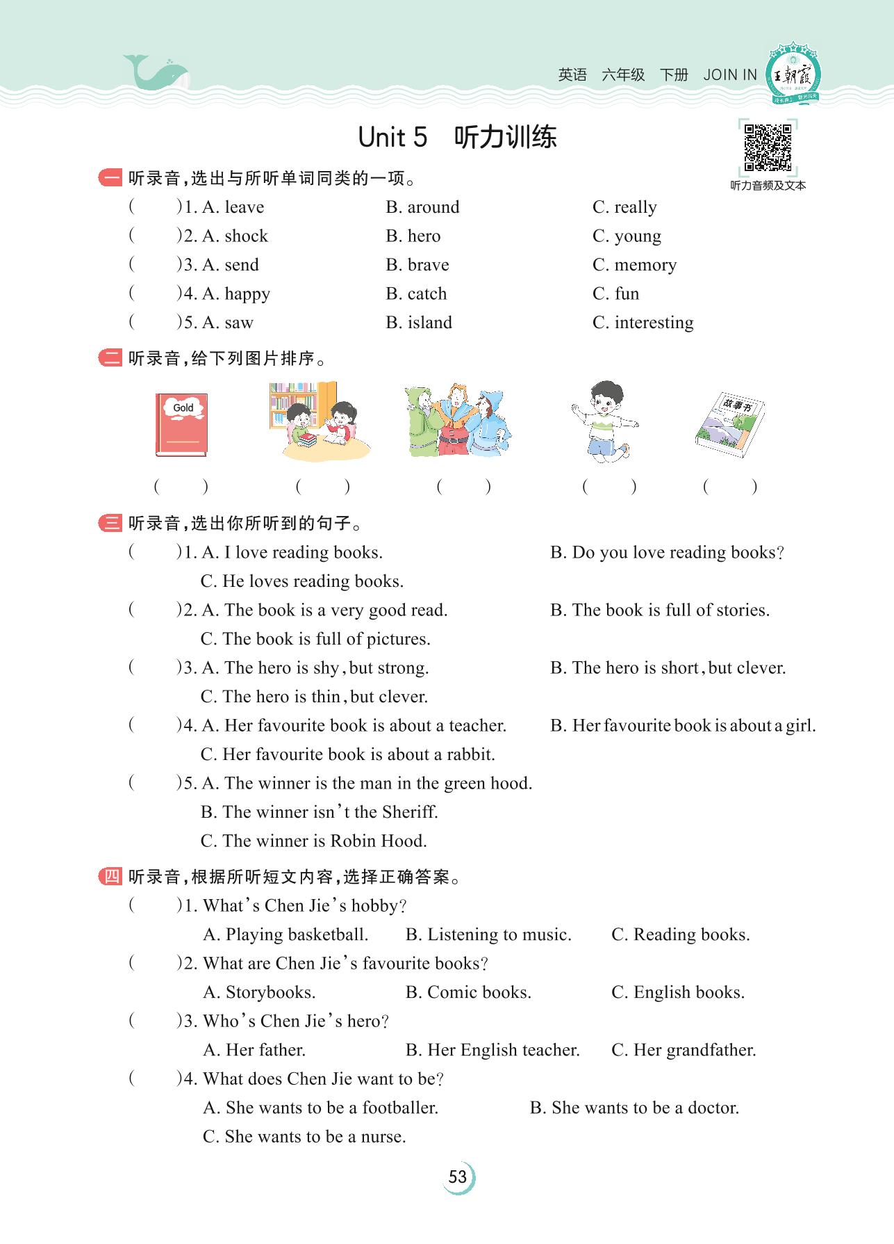 2023下册六年级英语剑桥版 Unit 5 听力训练