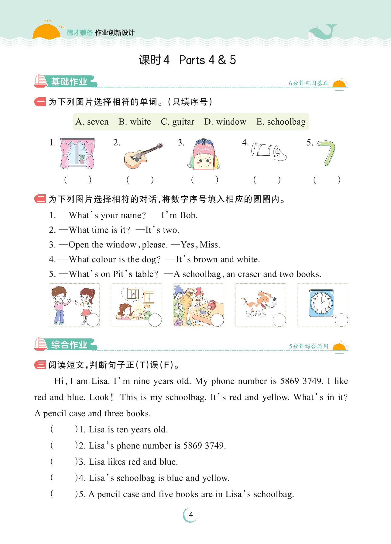 2023下册三年级英语剑桥版 Starter unit—课时 4 Parts 4 & 5