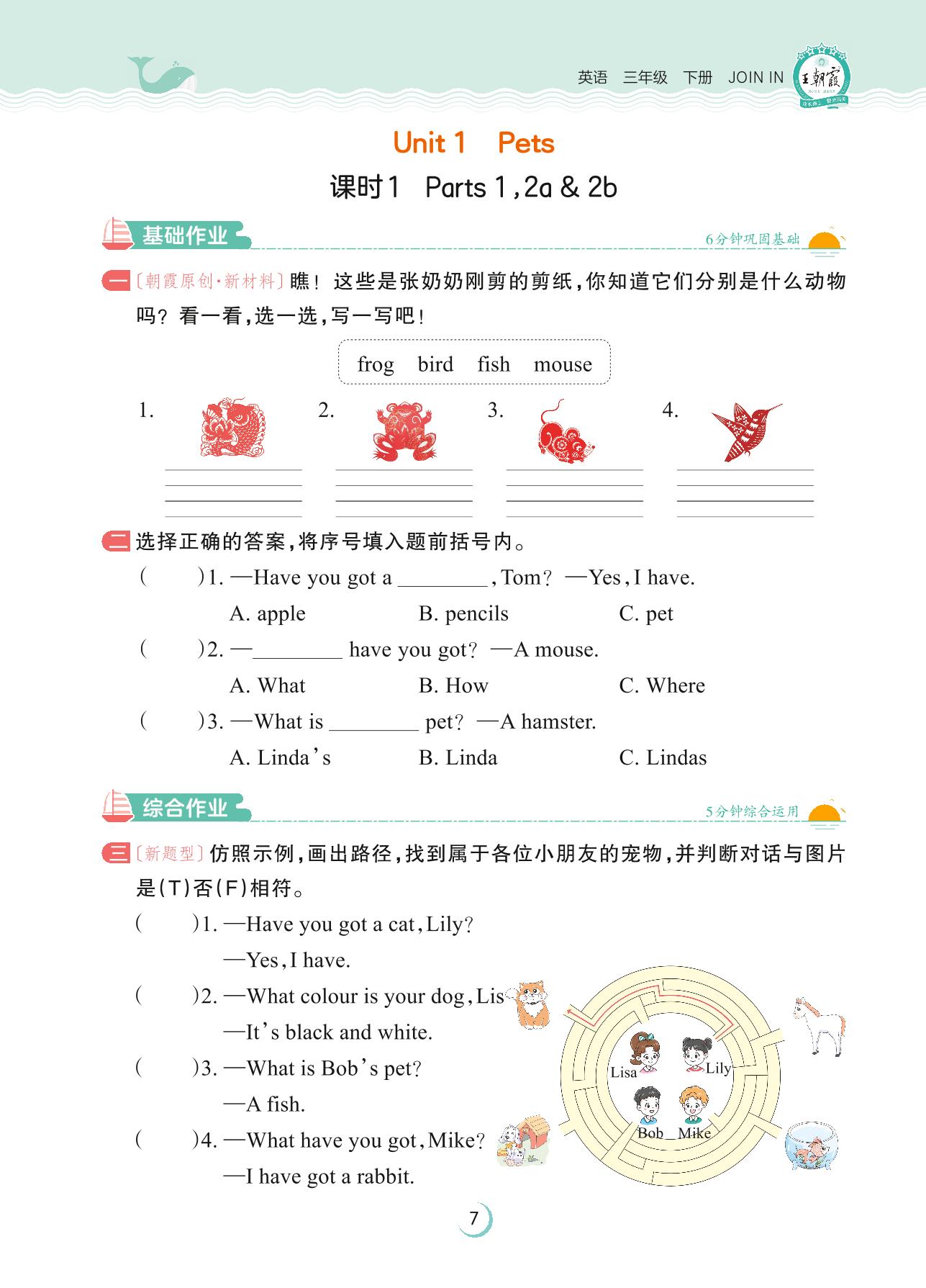 2023下册三年级英语剑桥版 Unit 1—课时 1 Parts 1,2a & 2b