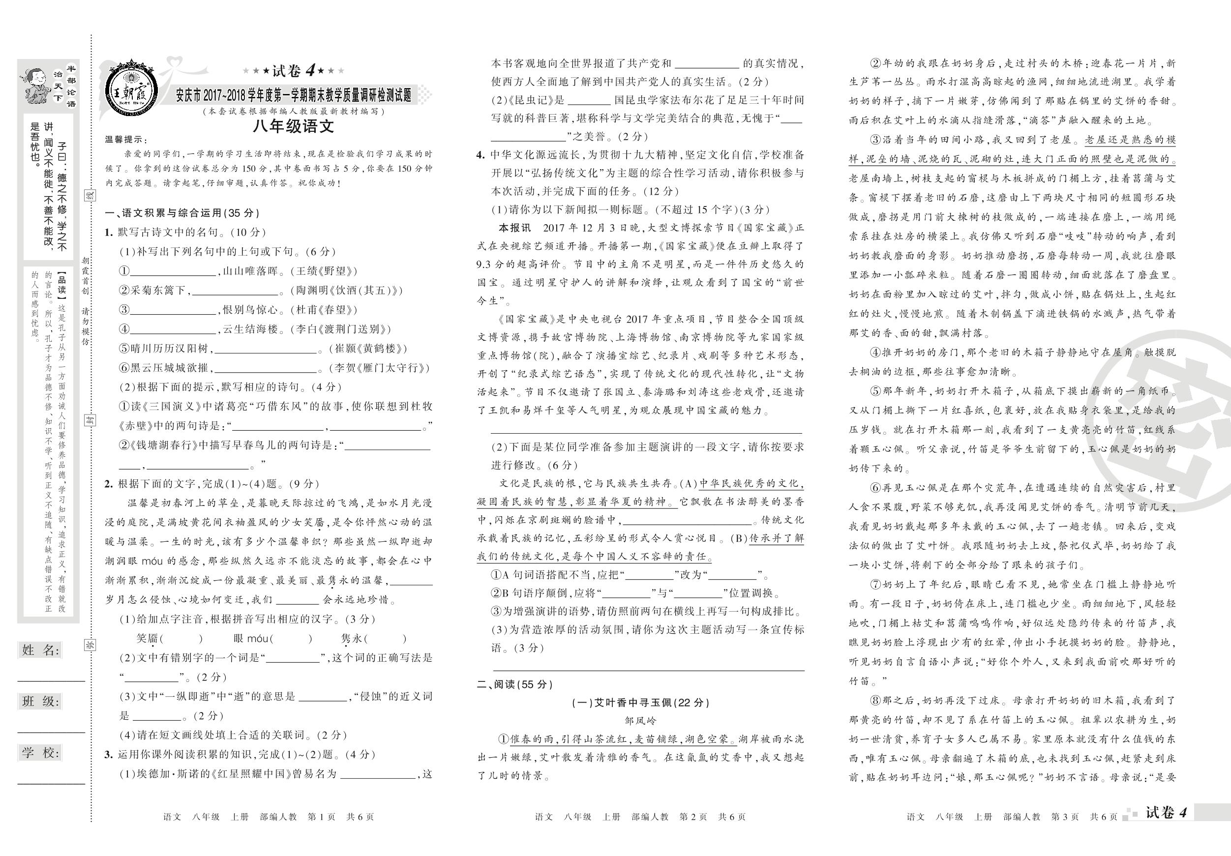 2017-2018学年第一学期安庆市八年级语文试卷(人教版)【4】