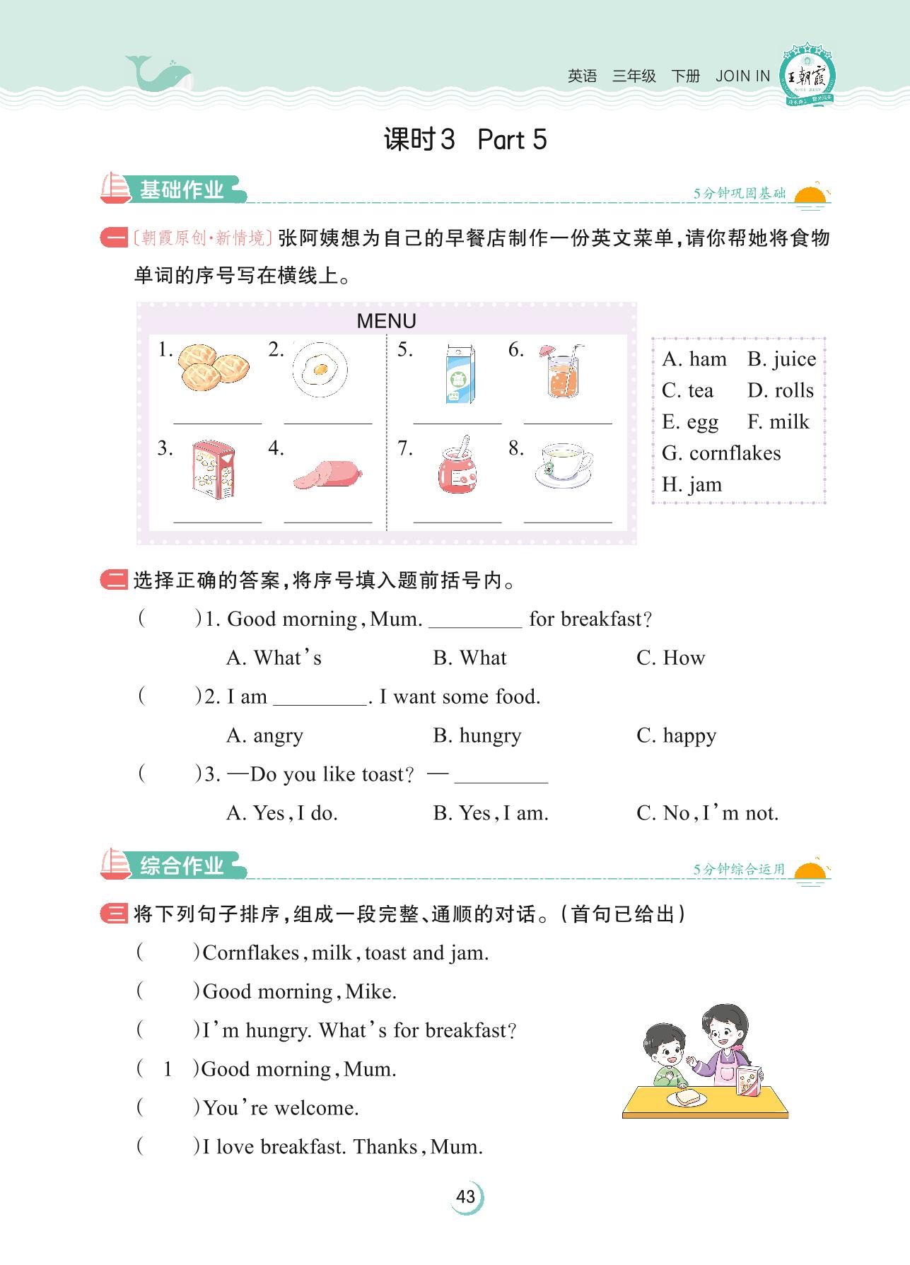 2023下册三年级英语剑桥版 Unit 5—课时 3 Part 5