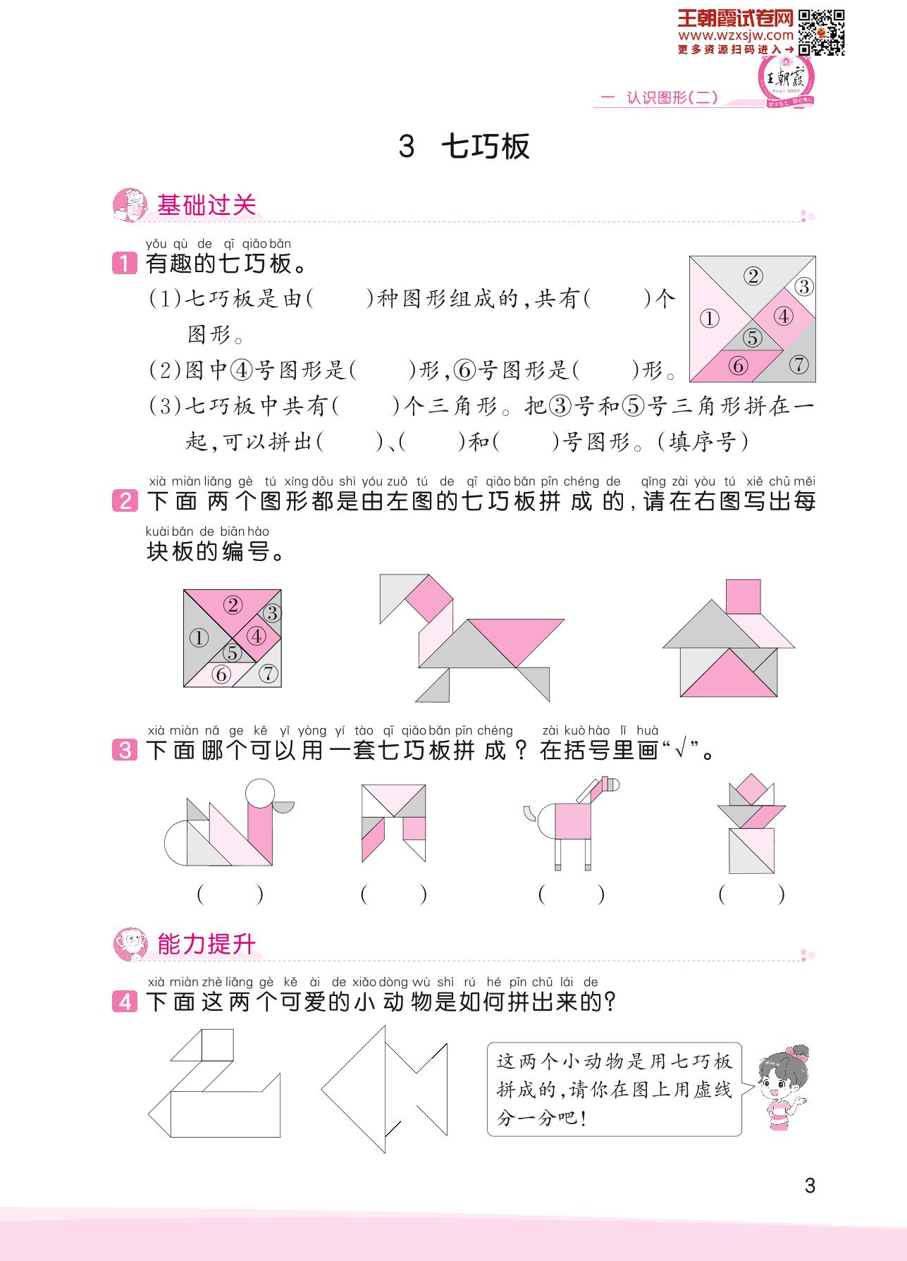 2023下册一年级数学人教版 一 认识图形(二)——3 七巧板