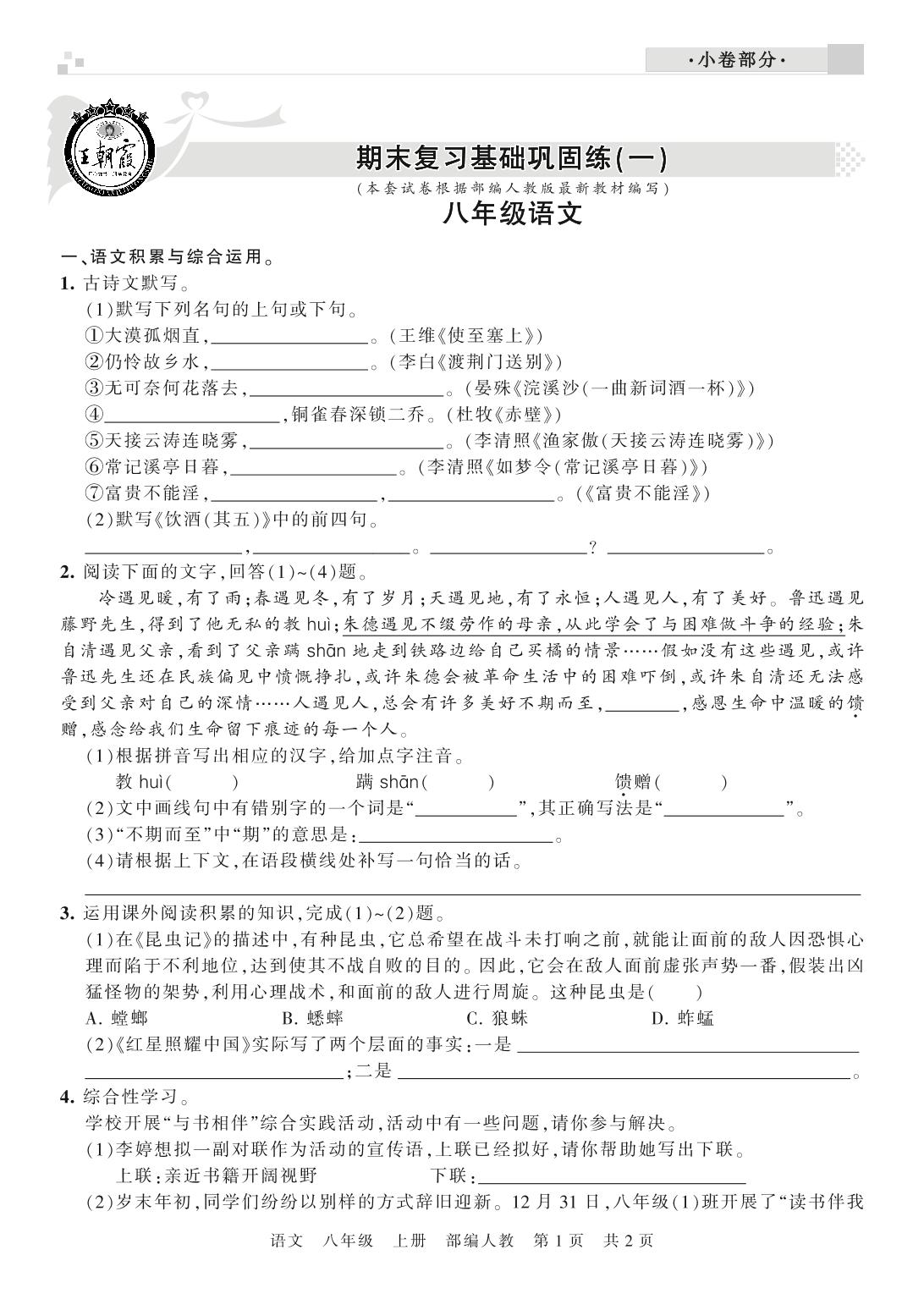 王朝霞期末小卷——期末复习基础巩固练八年级上册语文(人教版)_R210802183318【0】