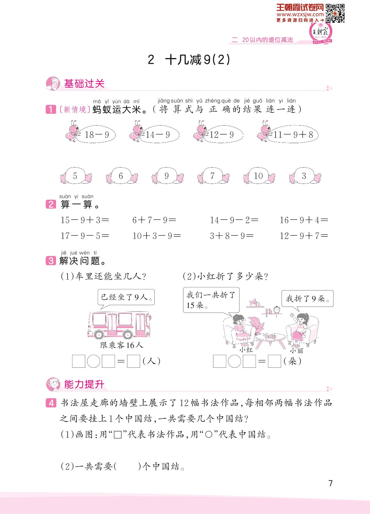 2023下册一年级数学人教版 二 20以内的退位减法——2 十几减9(2)