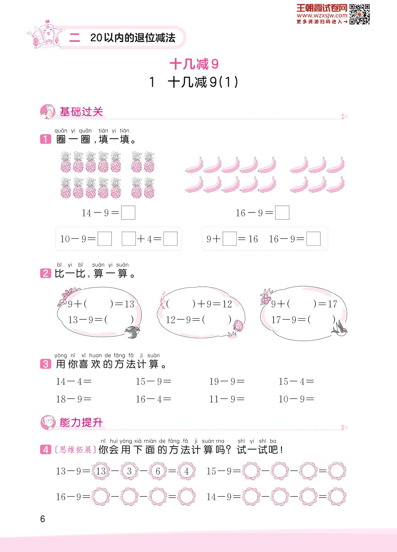 2023下册一年级数学人教版 二 20以内的退位减法——1 十几减9(1)