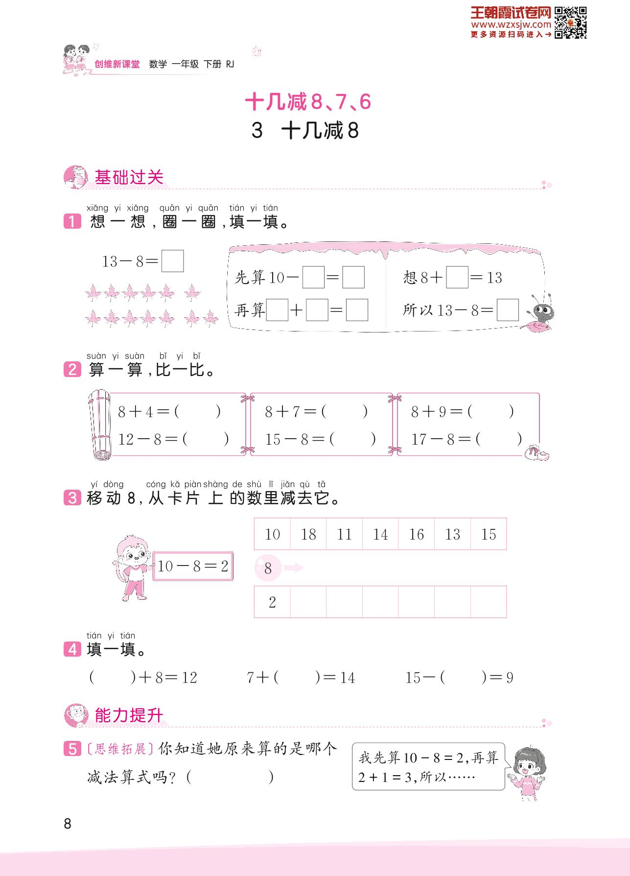 2023下册一年级数学人教版 二 20以内的退位减法——3 十几减8