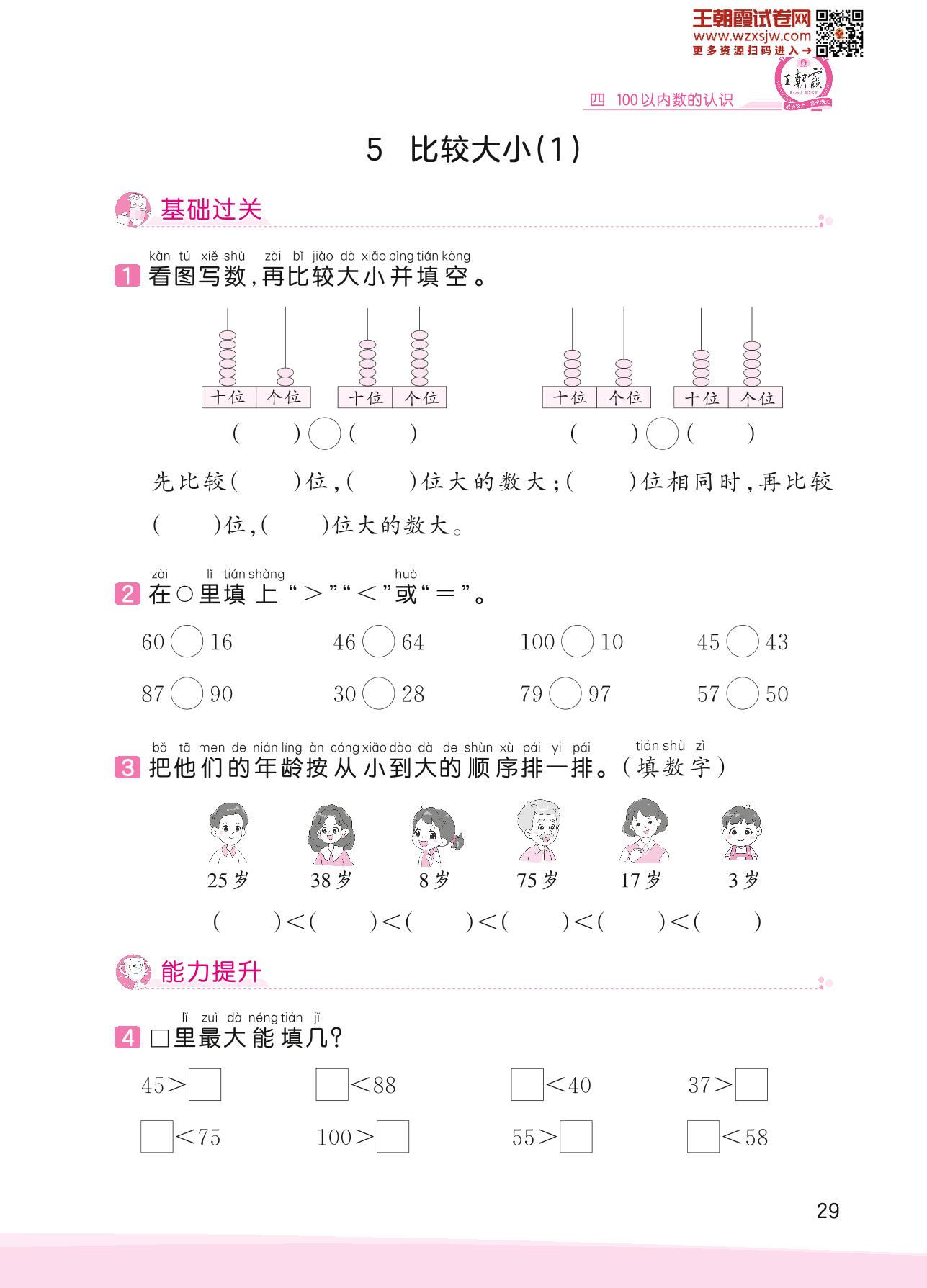 2023下册一年级数学人教版 四 100以内数的认识——5 比较大小(1)