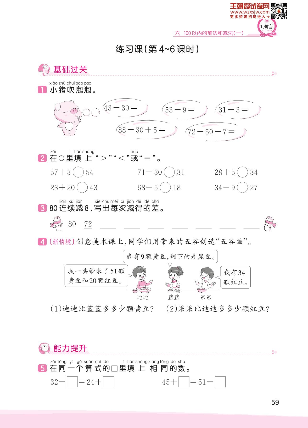 2023下册一年级数学人教版 六 100以内的加法和减法(一)——练习课(第4~6课时)