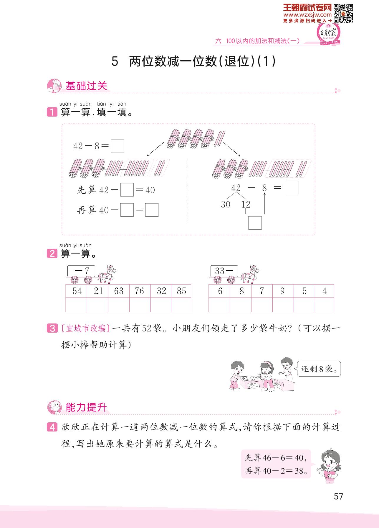 2023下册一年级数学人教版 六 100以内的加法和减法(一)——5 两位数减一位数(退位)(1)