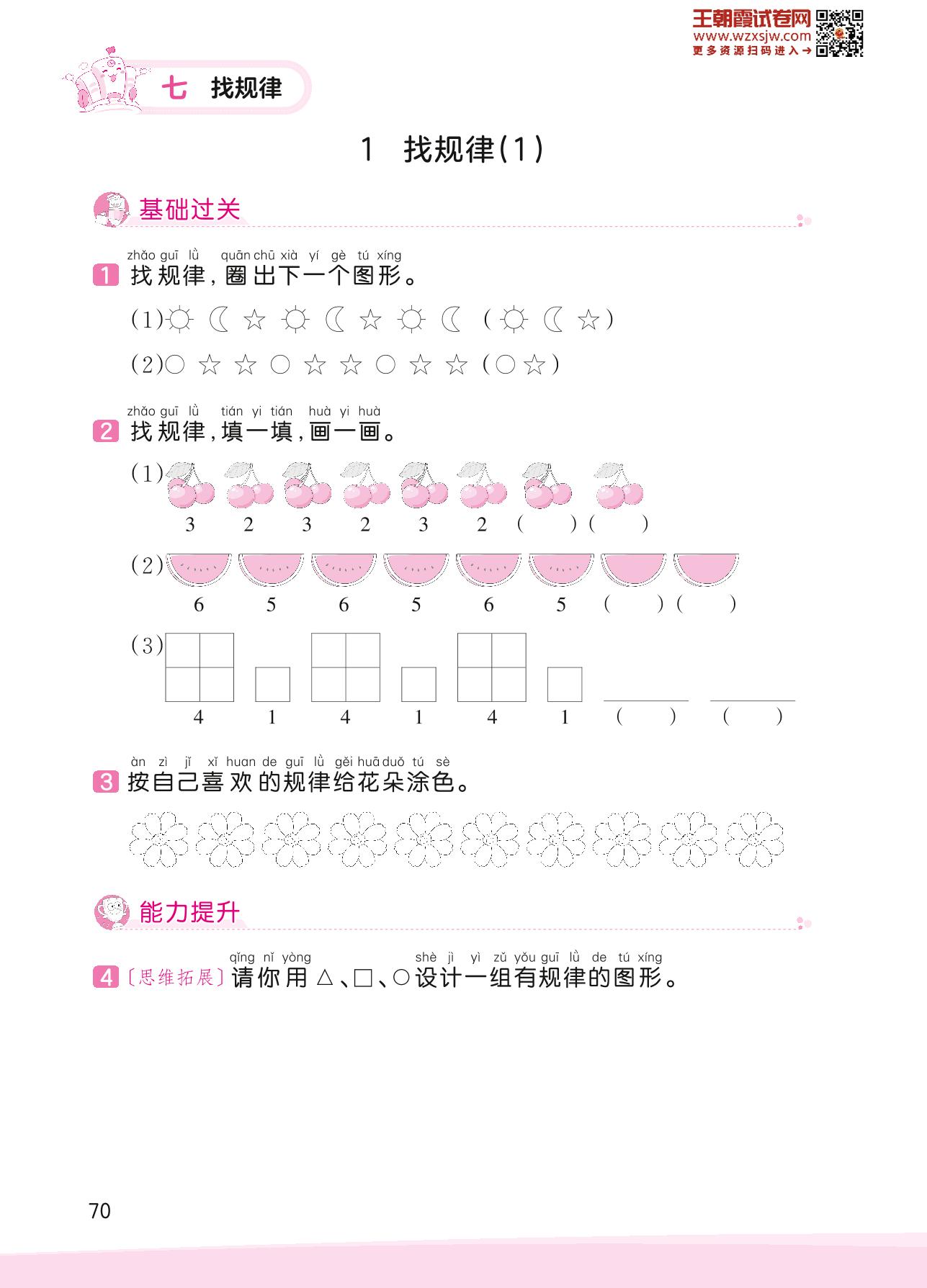 2023下册一年级数学人教版 七 找规律——1 找规律(1)