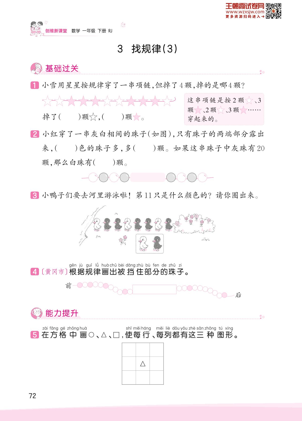 2023下册一年级数学人教版 七 找规律——3 找规律(3)