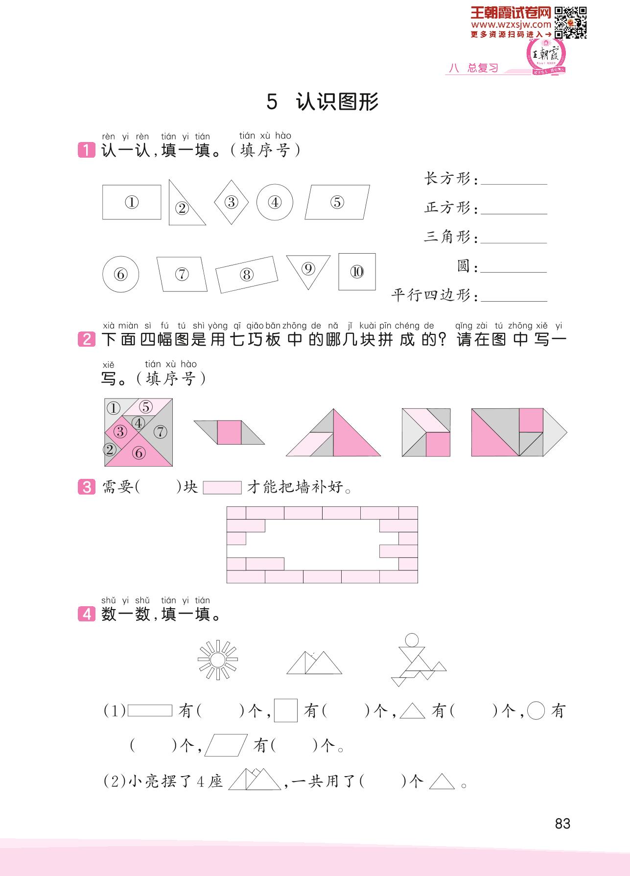 2023下册一年级数学人教版 八 总复习——5 认识图形