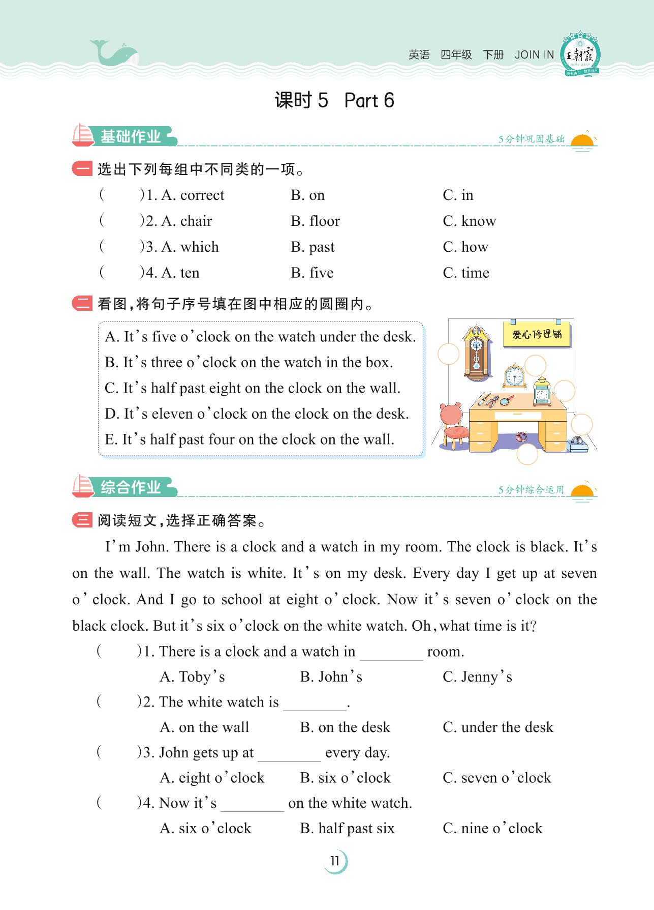2023下册四年级英语剑桥版 Unit 1—课时 5 Part 6