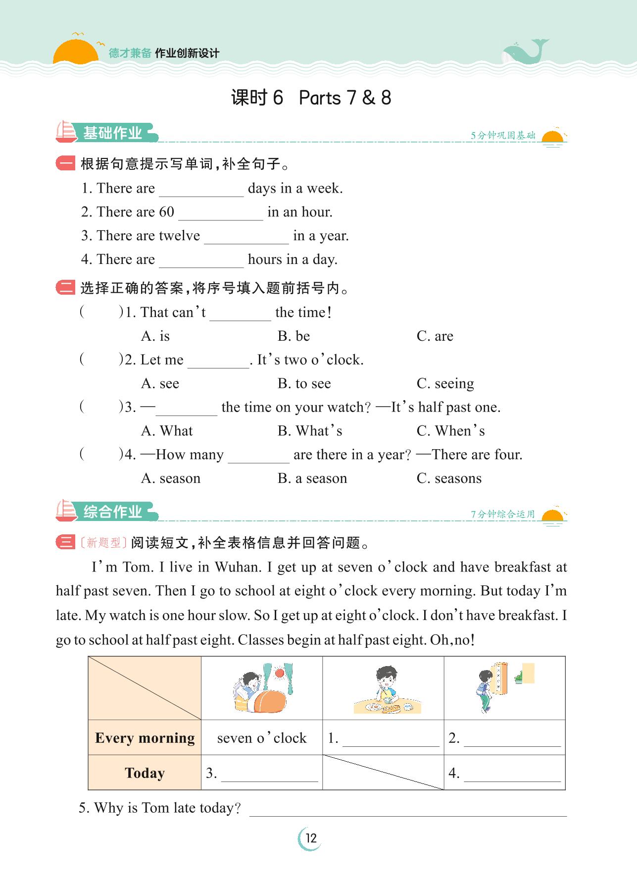 2023下册四年级英语剑桥版 Unit 1—课时 6 Parts 7 & 8