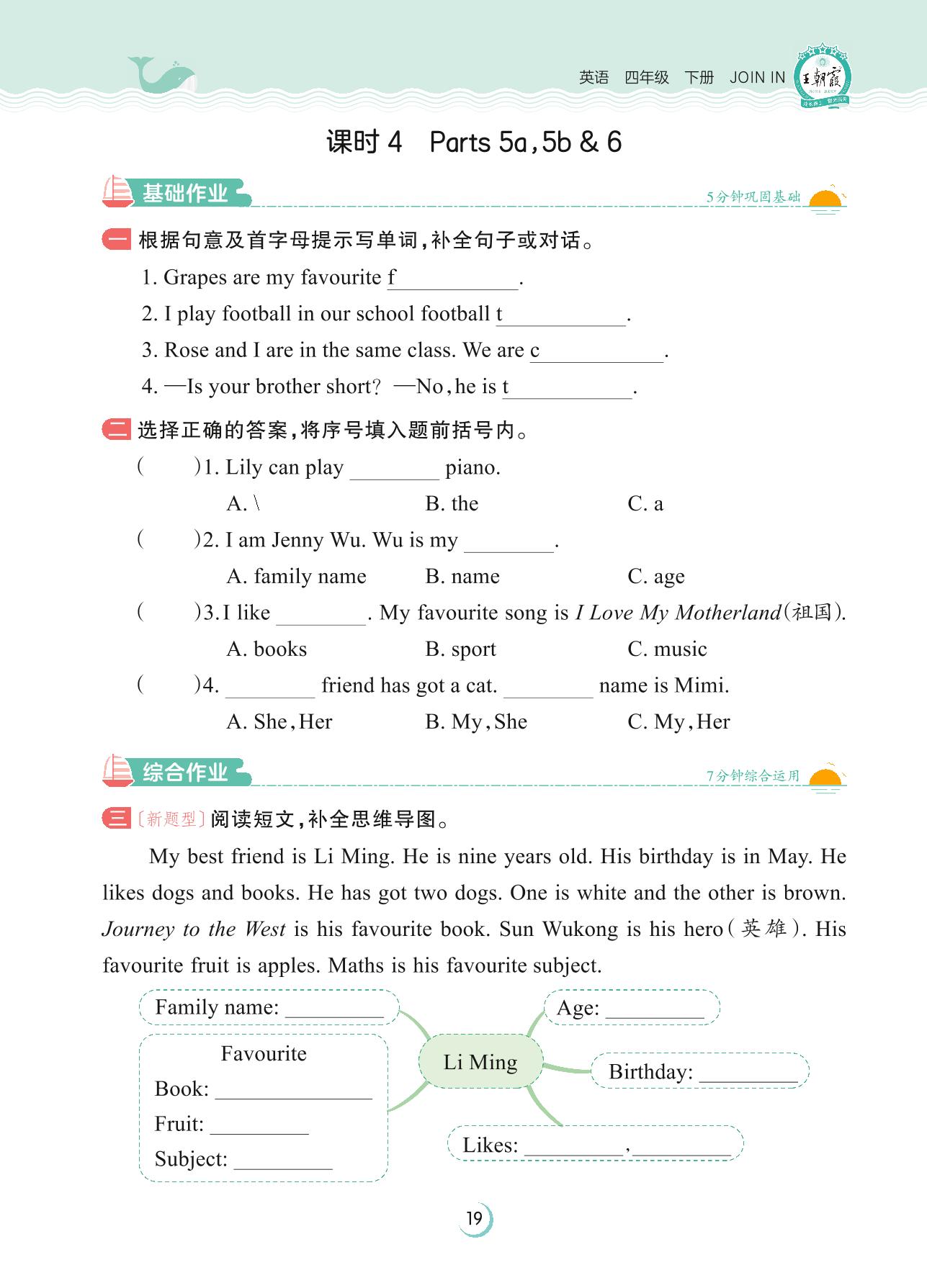 2023下册四年级英语剑桥版 Unit 2—课时 4 Parts 5a,5b & 6